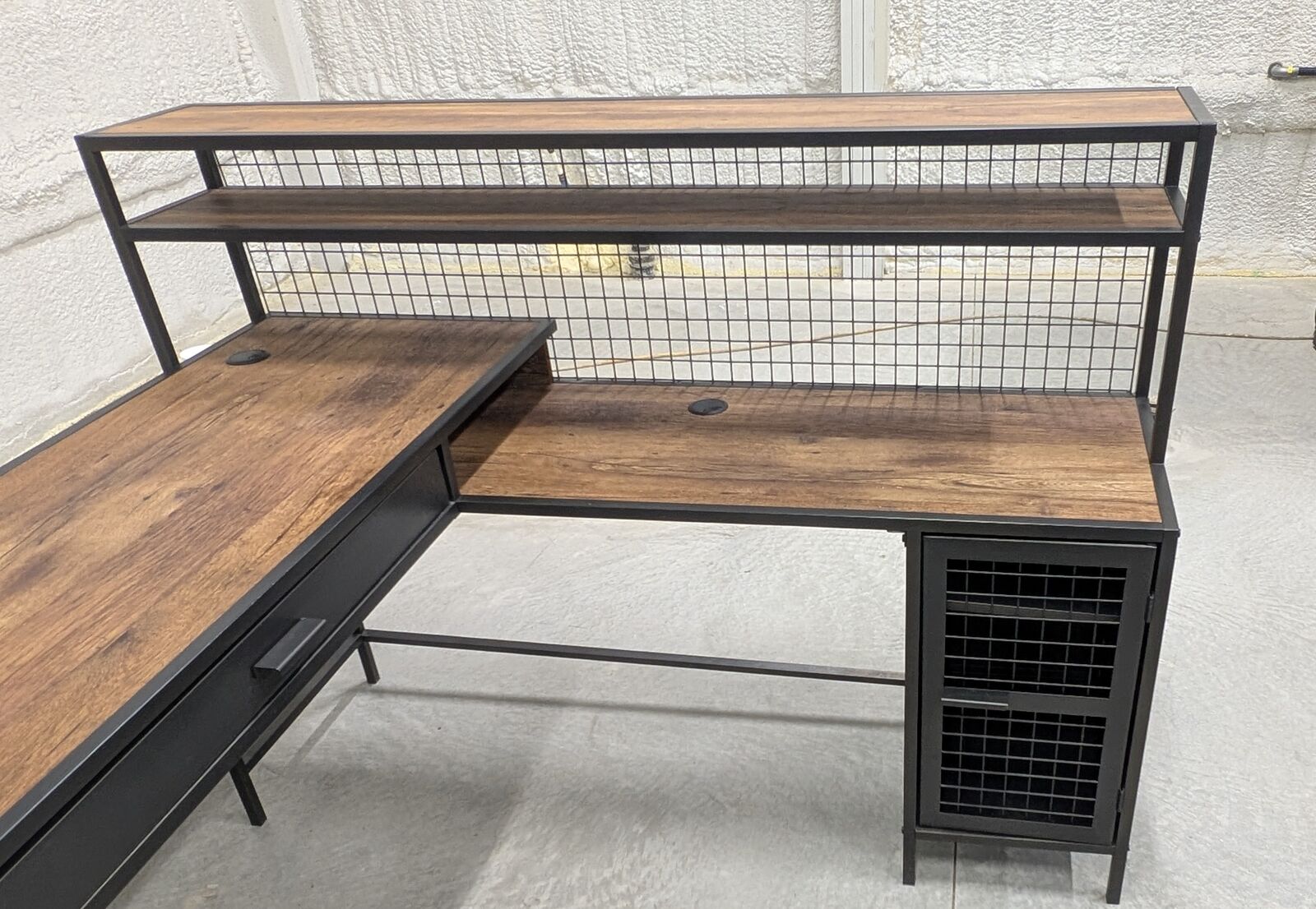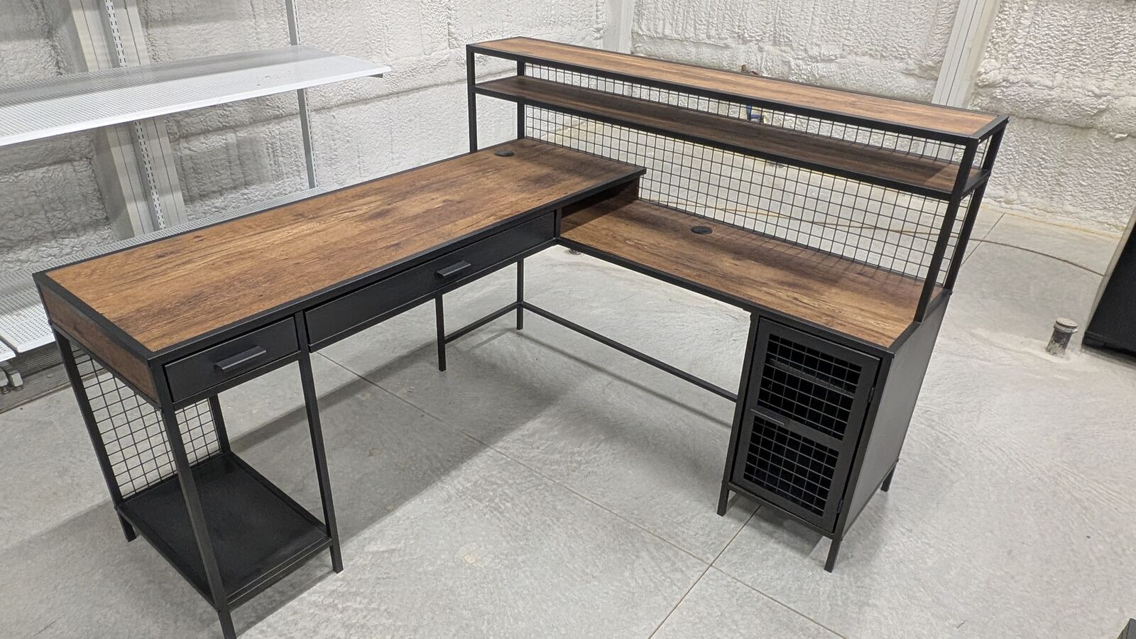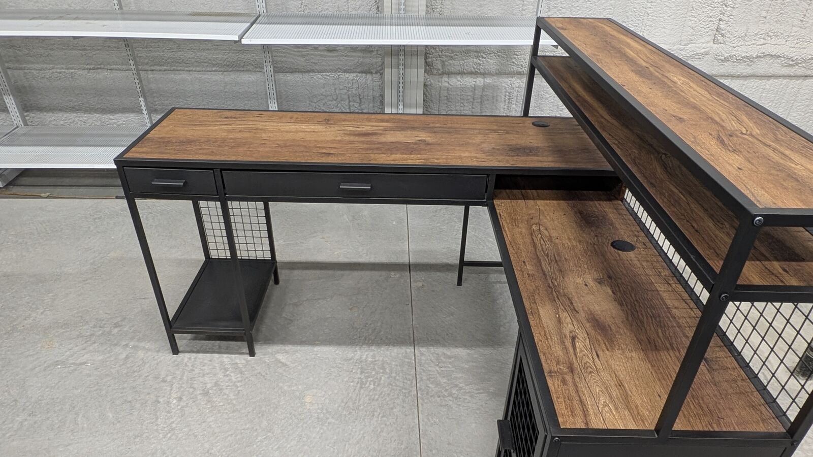 VenmoUpgrade your home office or gaming setup with this stylish and highly functional L-shaped desk. It features a rustic wood-grain finish paired with a matte black metal frame for a clean, industrial look. We have 4 desks available.