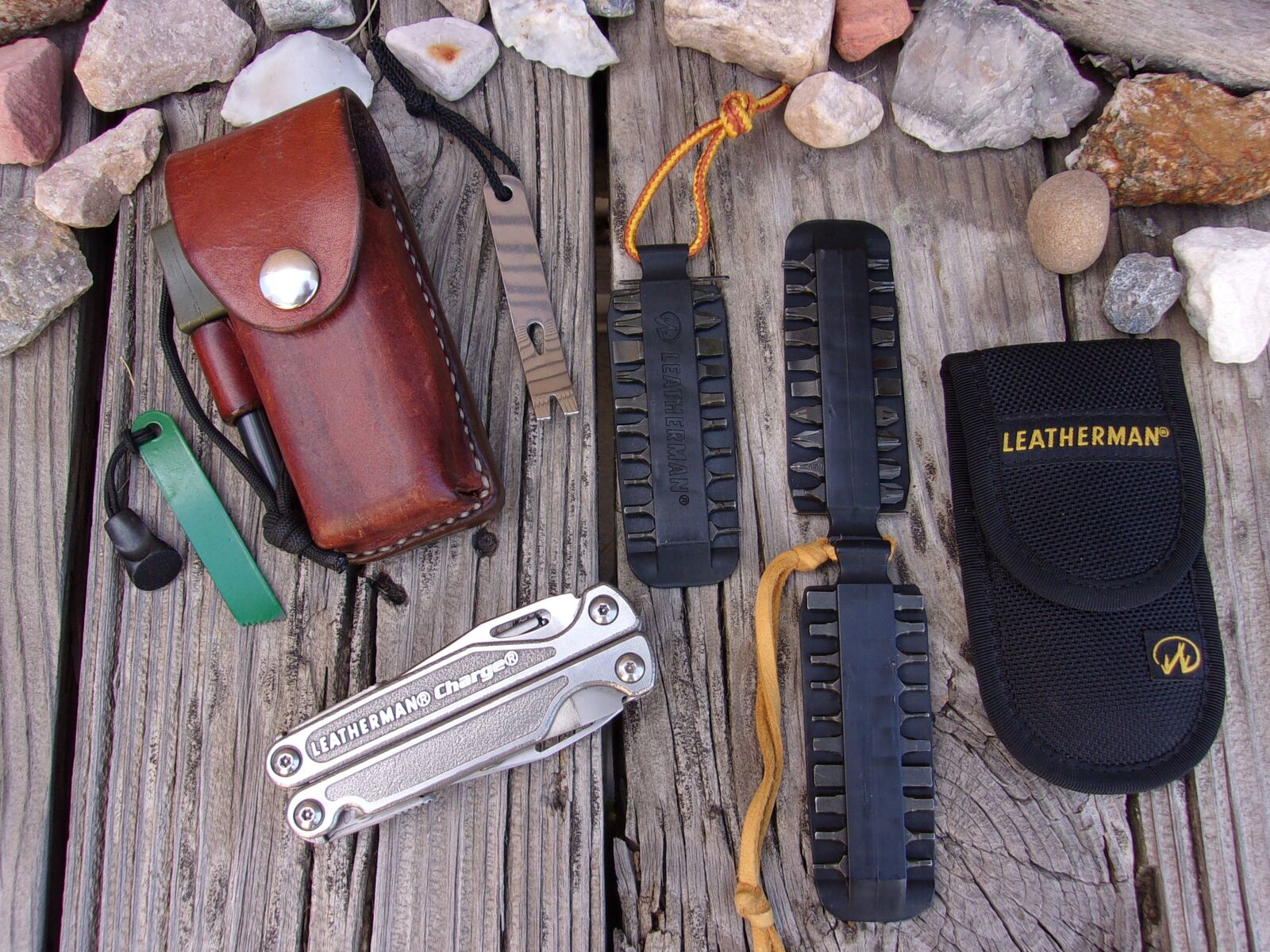 Leatherman Charge 154cm 08/10 Available is my Leatherman Charge TI with Custom Leather Holster and a ton of extras. This was the best Leatherman in my opinion to hit the market due to its construction and materials. It has Titanium Handles with Brass Bushings and the 154cm Knife Steel which is one of my favorite knife steels. As you can see from the photos, I take very good care of my tools making this piece on a scale of 1-1o a solid 9. The custom leather case is an all-in-one multi-purpose case holding the Leatherman, Bit Kit, Ndur Ferro Rod, Scrapper, and Small Pry Bar. Also included are roughly about 24 replacement bits and 2-romovable pocket clips / 1-carabiner clip. EVERYTHING PICTURED IS INCLUDED