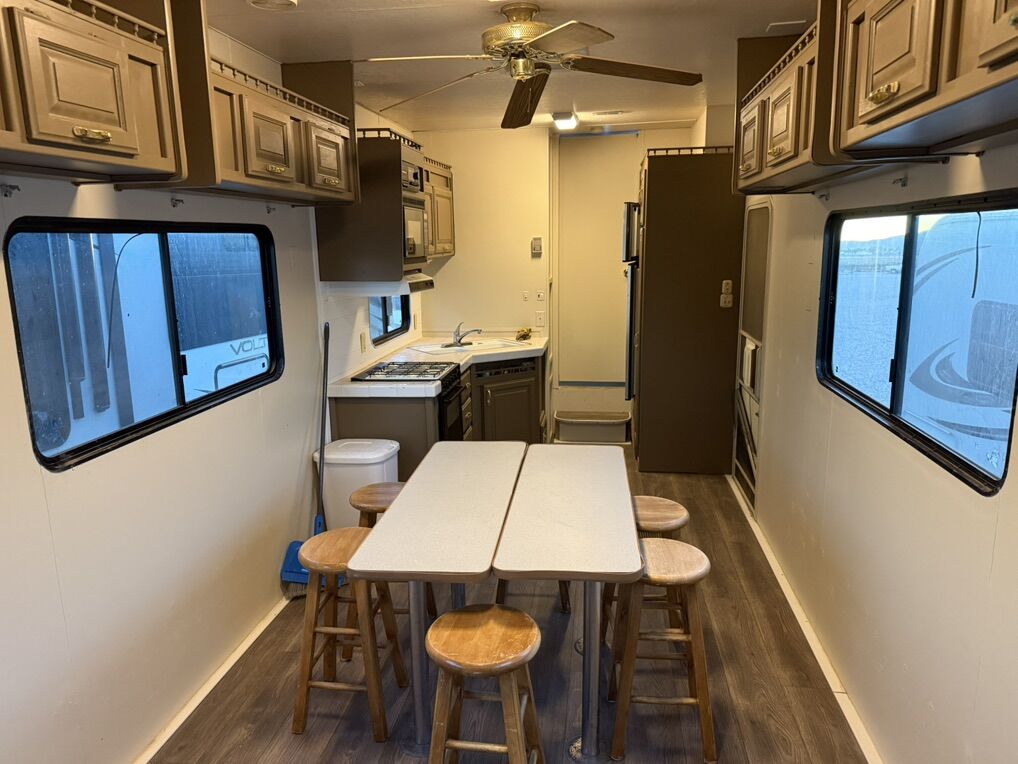 We have had this trailer for about 3 years and have loved it. Only reason we are selling it is because it only gets used about 2 x a year and we would like to downsize since we don’t need a toy hauler. In the past 6 months we have replaced the water heater, re coated the roof with sealer, re sealed the back 4 windows since a couple were leaking, replaced water pump, installed new toilet, new shower fixtures, fixed 1 electric jack, (second jack is starting to have some issues now but still works occasionally), installed new flooring and underlayment, painted walls. The flooring has been done through the entire trailer other than the bathroom area shown in pictures. We were going to install carpet but haven’t finished it yet. We still have enough hard wood flooring to finish that area and it will be included with trailer. Walls could use some touch up painting to clean it up. Trailer was professionally winterized in October. 7,250$ OBO Open to offers and trades.