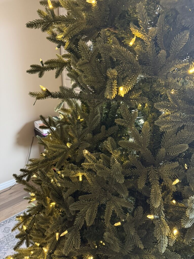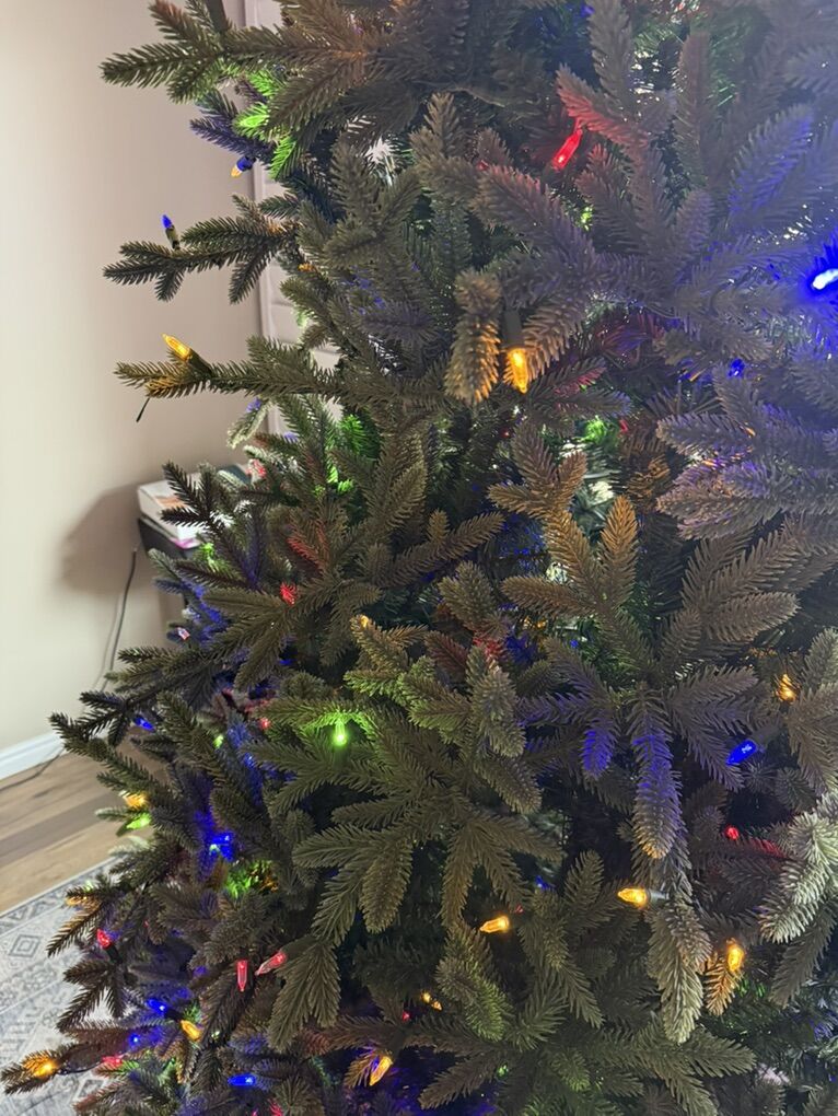 Message me today—this tree won’t last long at this price! Details & Features: Multicolored and white lights Measures at 9 feet tall with 60-inch base diameter for a splendid display. Remote with 7 lighting options: twinkling, steady, color-changing, and more Ultra-realistic “forest fresh” tips Simple Shape Technology with hinged branches for easy setup 900 dual-color LED lights with 7 functions Flame-resistant for safety Comes in original sturdy box with stand (perfect for storage) Great condition – very nice tree! Why you’ll love it:
