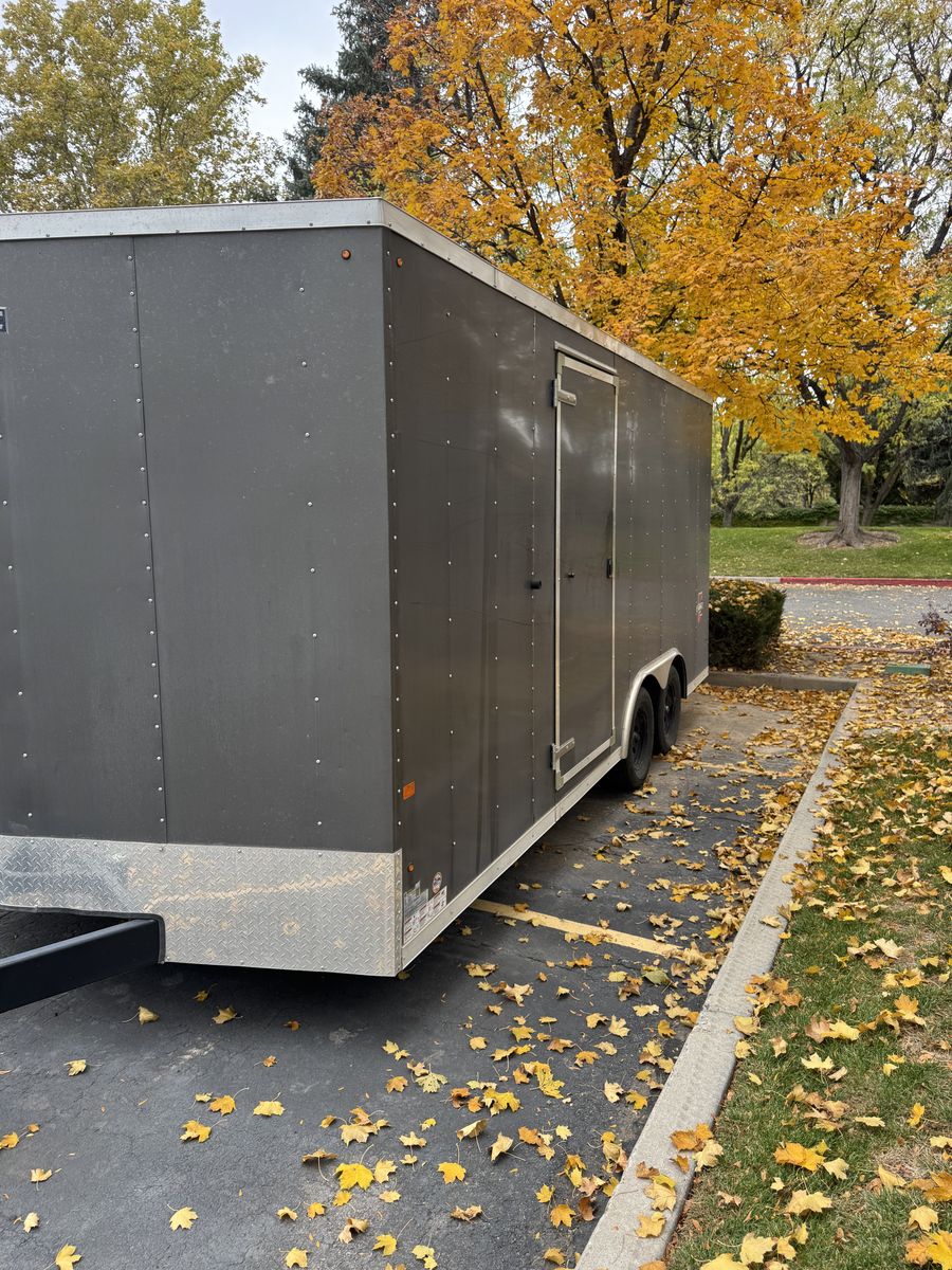 Venmo2023 19x8 enclosed trailer. Side entrance door and pull down ramp. See photos for trailer details.