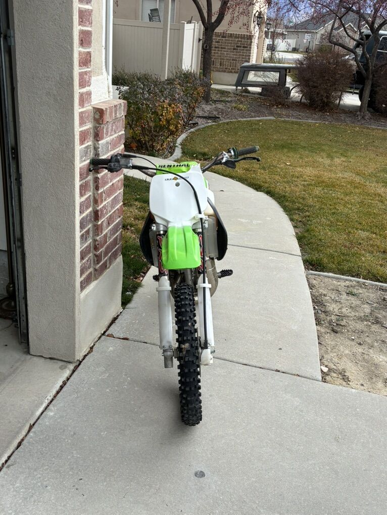 VenmoGreat running bike. FMF pipe repacked more recently newer top end with 20 hours and bottom with about 10. It is the big wheel version of the kx85. Desert tank that holds little less then 3 gallons. Has never been race comes with a sand shark desert tire. New oil changed and air filter Title in hand message would be best