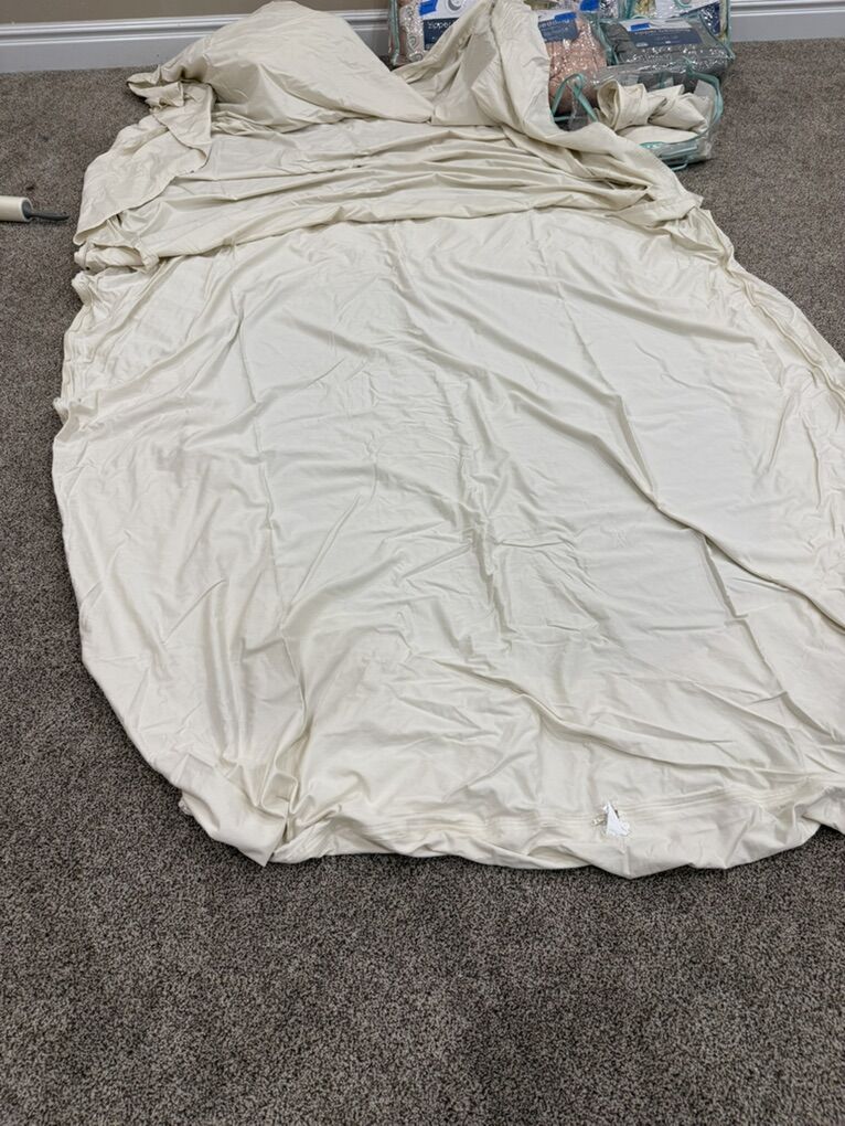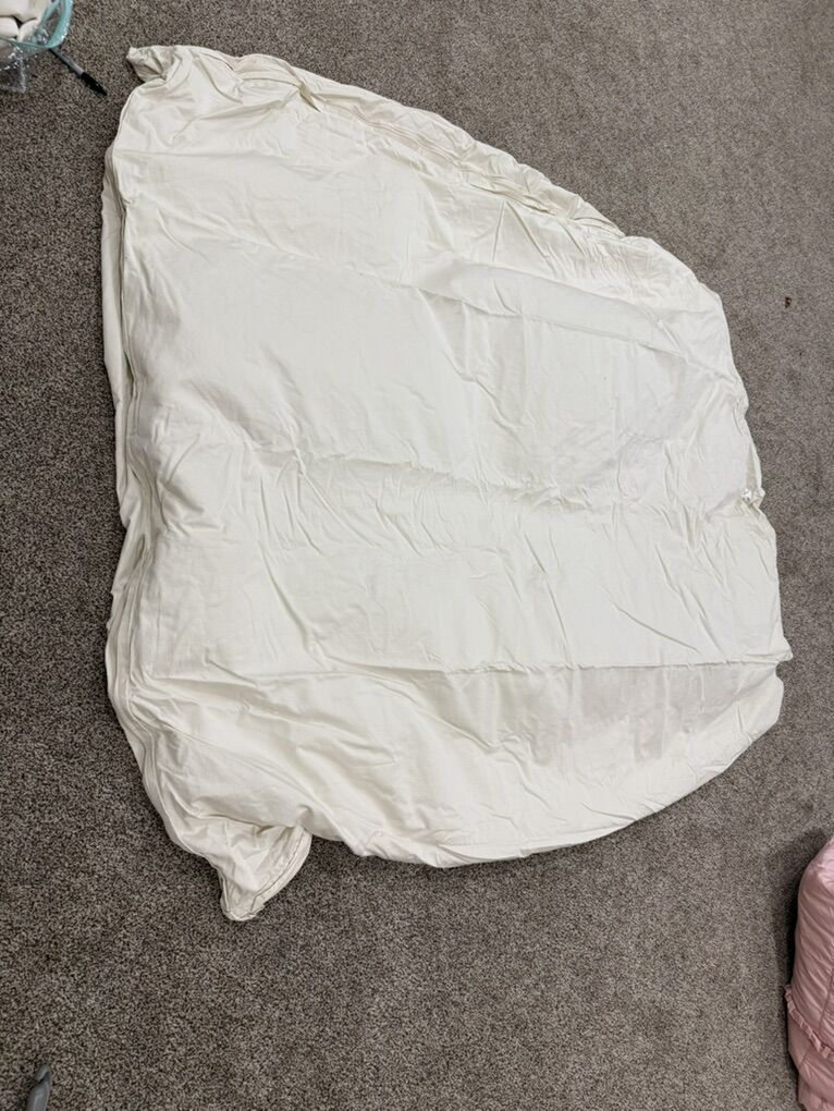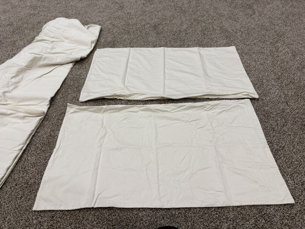 Few faint dirt marks, $259 new. Has 2 pillow cases and 2 sheets