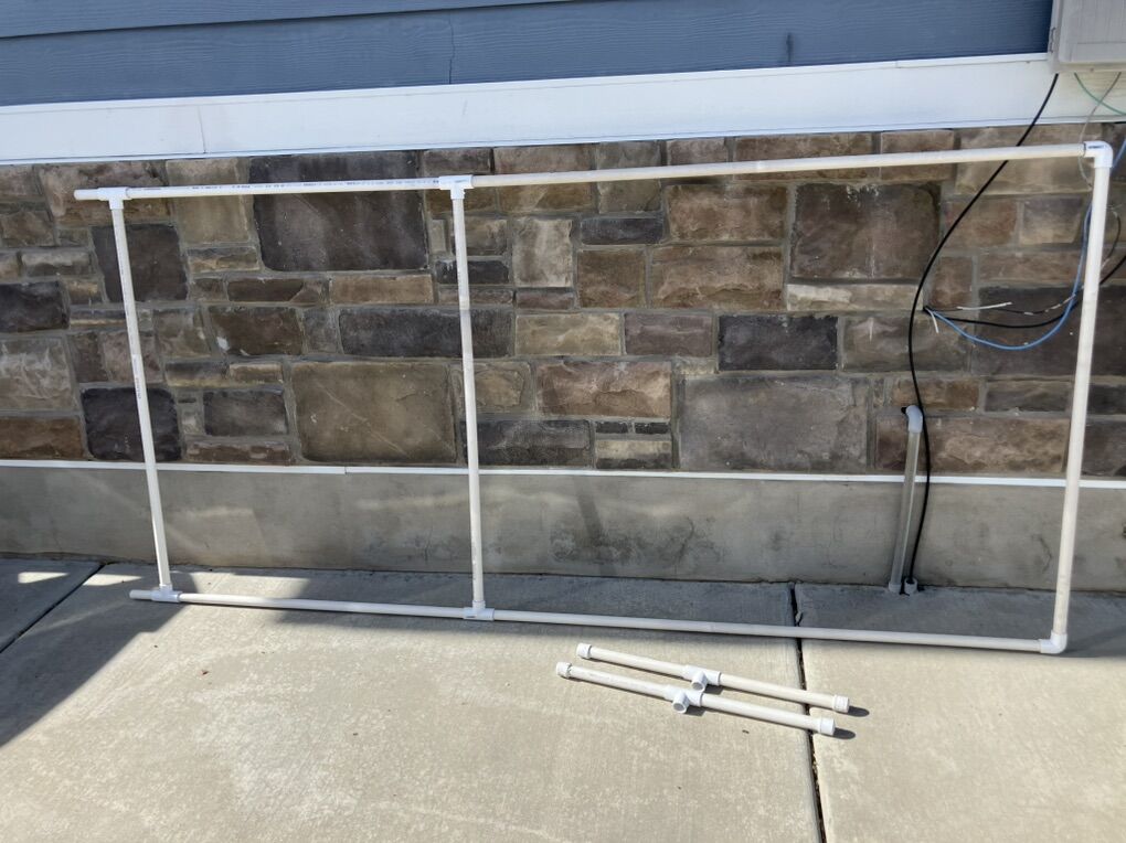 VenmoThere are two of these. $5 each. These are good to attach a screen, picture, backdrop, etc. the legs are removable. All made of PVC pipe.