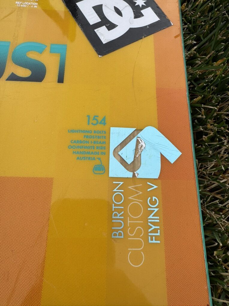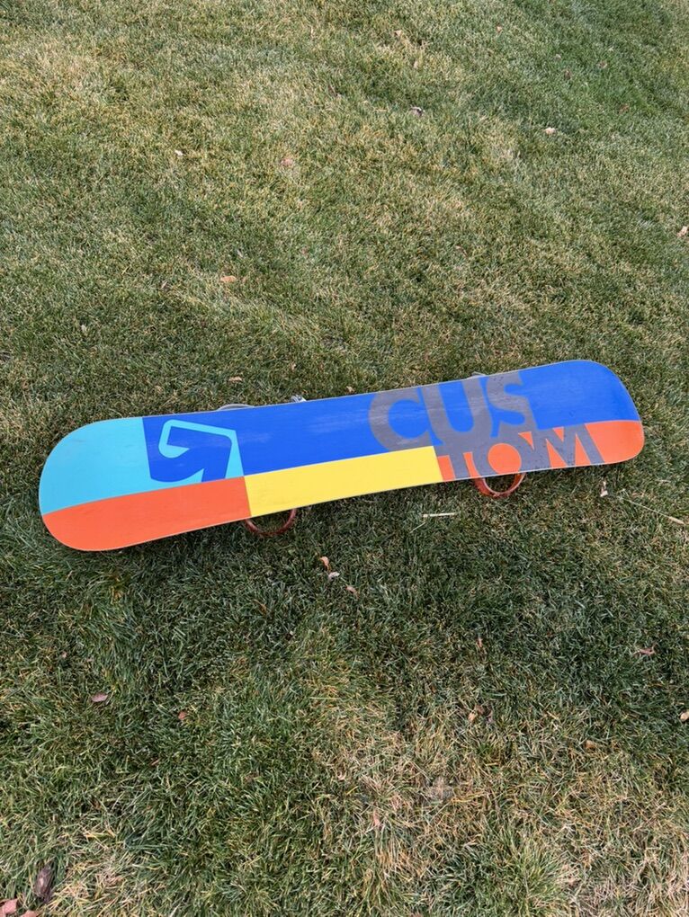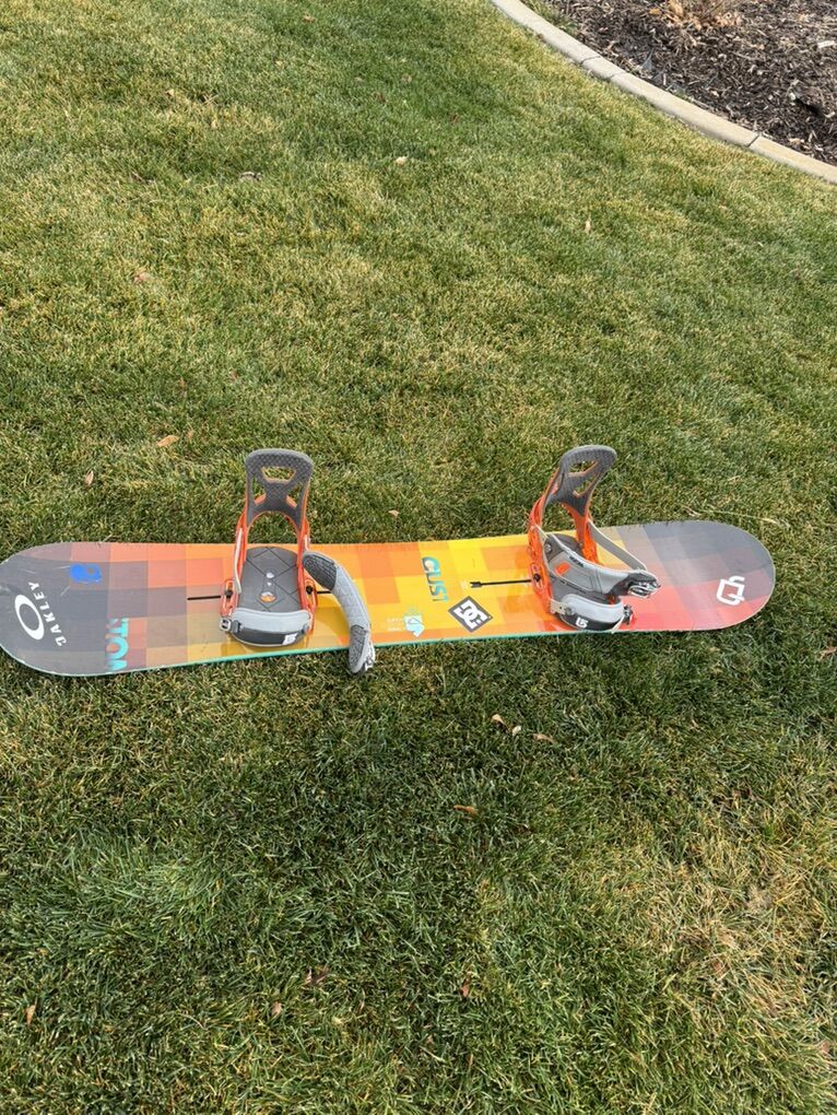 VenmoBurton snowboard and Burton bindings. 154cm length. Used but definitely not abused. There is one chip on the end that I covered with epoxy see pictures for an up close of it. Has plenty of seasons left in it.