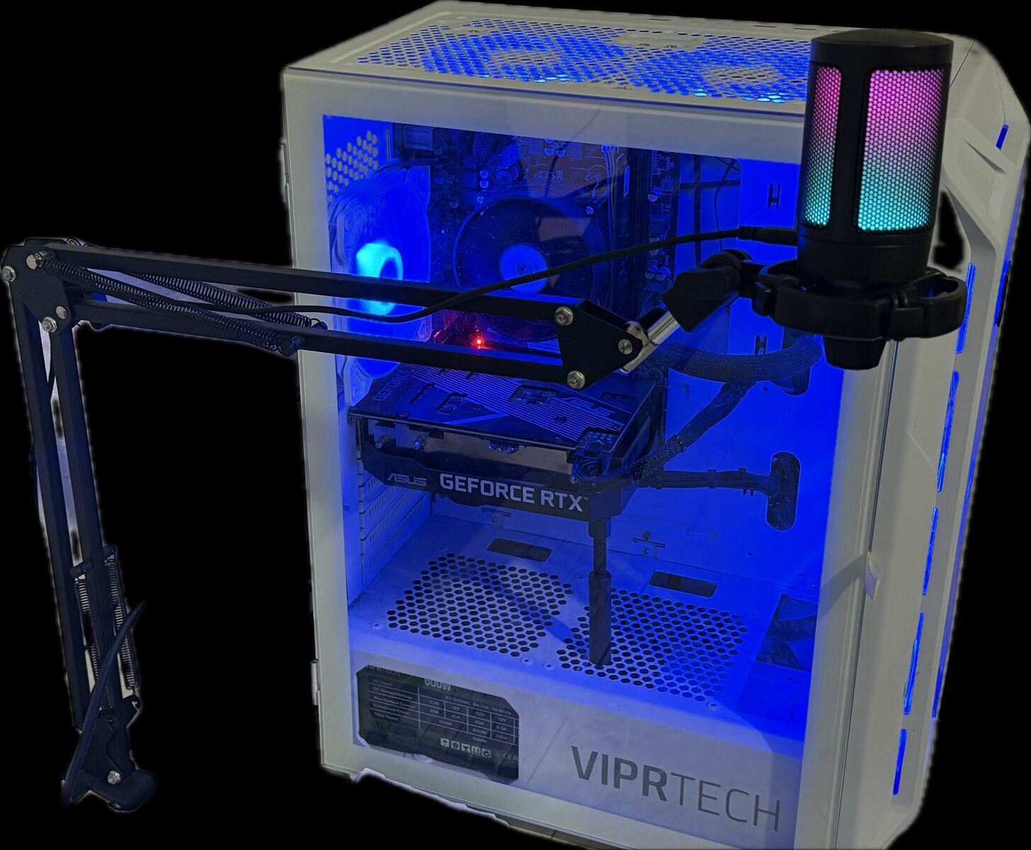 **• White keyboard** **• Logitech G305 wireless gaming mouse** **• FIFINE USB condenser gaming microphone (RGB, mute, gain control)** **• FIFINE suspension boom arm / mic stand** **• Shock mount & pop filter** Great For