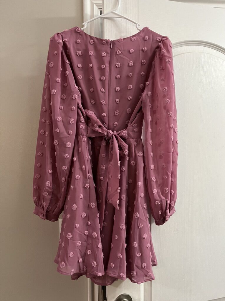 VenmoThis is a Junior’s or women’s small. My high school daughter wore it one time to a dance. It measures 32” from the shoulder to the bottom of the dress. Comes from smoke/pet free clean home. Cash or Venmo. If the ad is up, it’s available. Will not respond to “is this available”