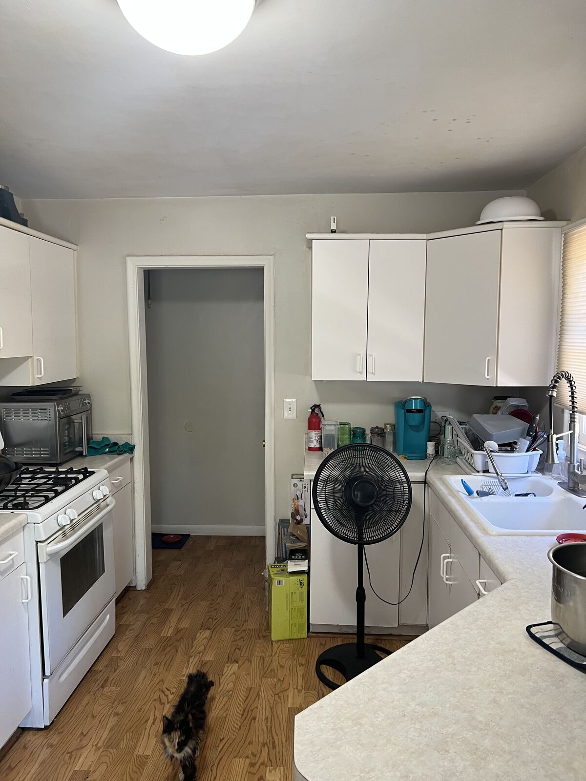 Bedroom is 15x9 foot, share a bathroom downstairs with 1 roommate. Kitchen upstairs shared between the 4 of us.