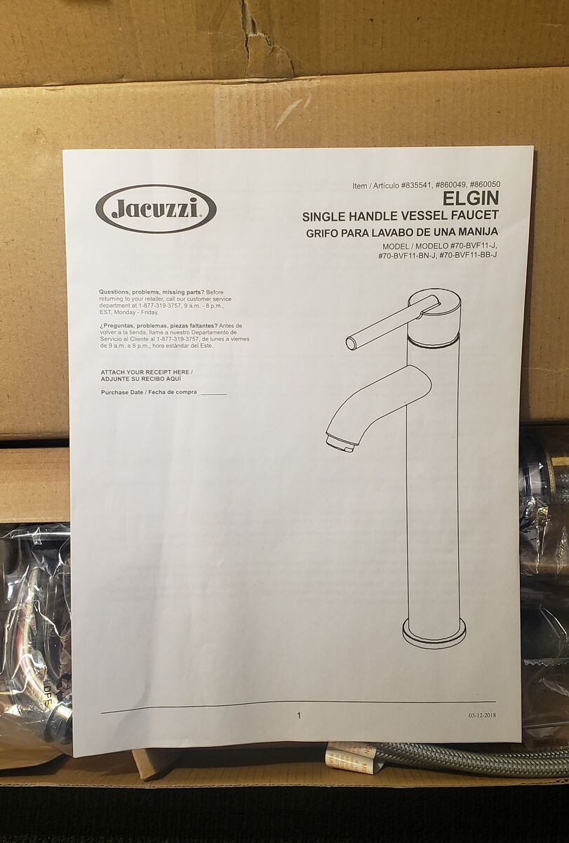This New Modern And Elegant Jacuzzi Elgin Chrome 1-Handle Vessel WaterSense Bathroom Sink Faucet Is Still In The Original Package.