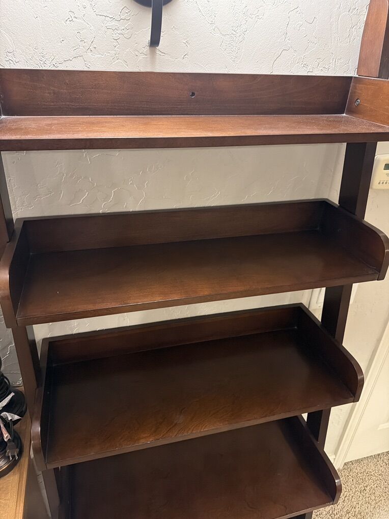 VenmoReally nice wall shelves. Solid dark wood. Really sturdy but can be secured to the wall if needed.