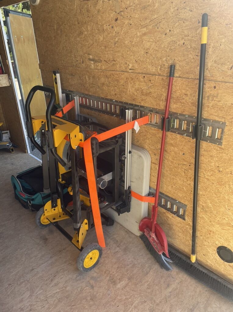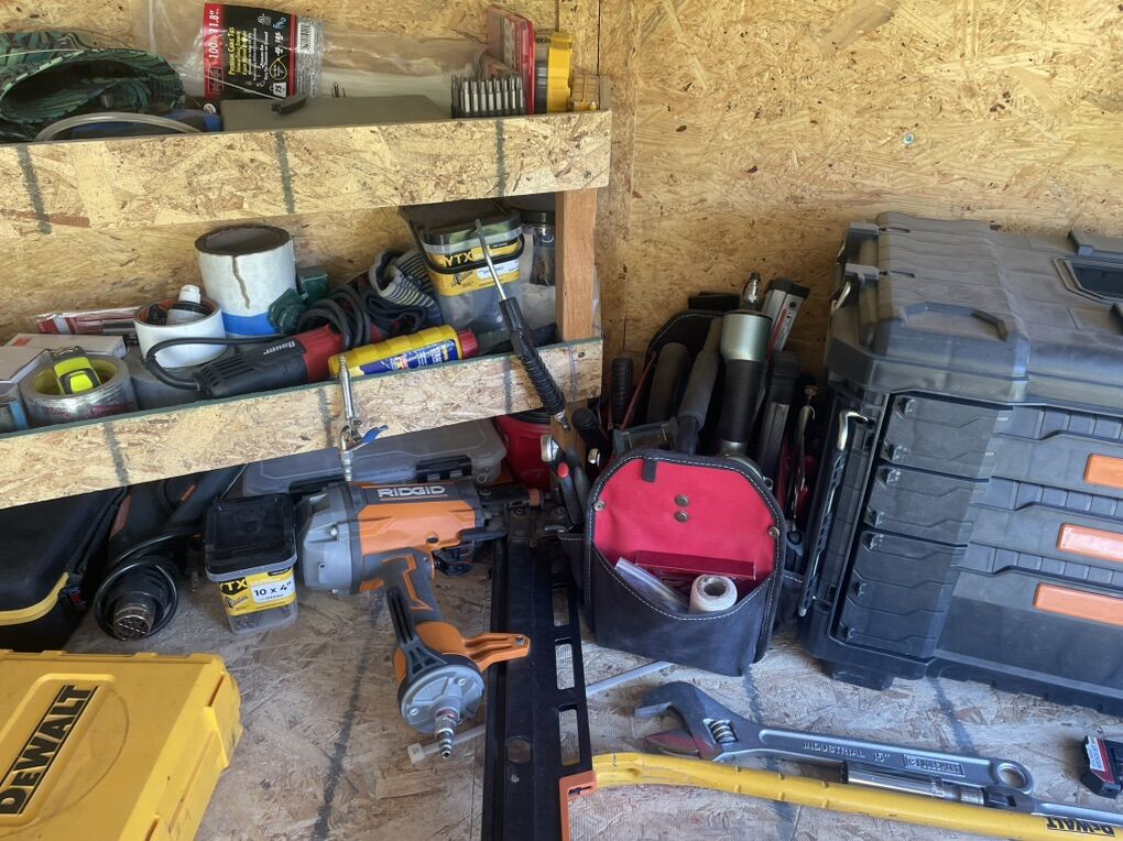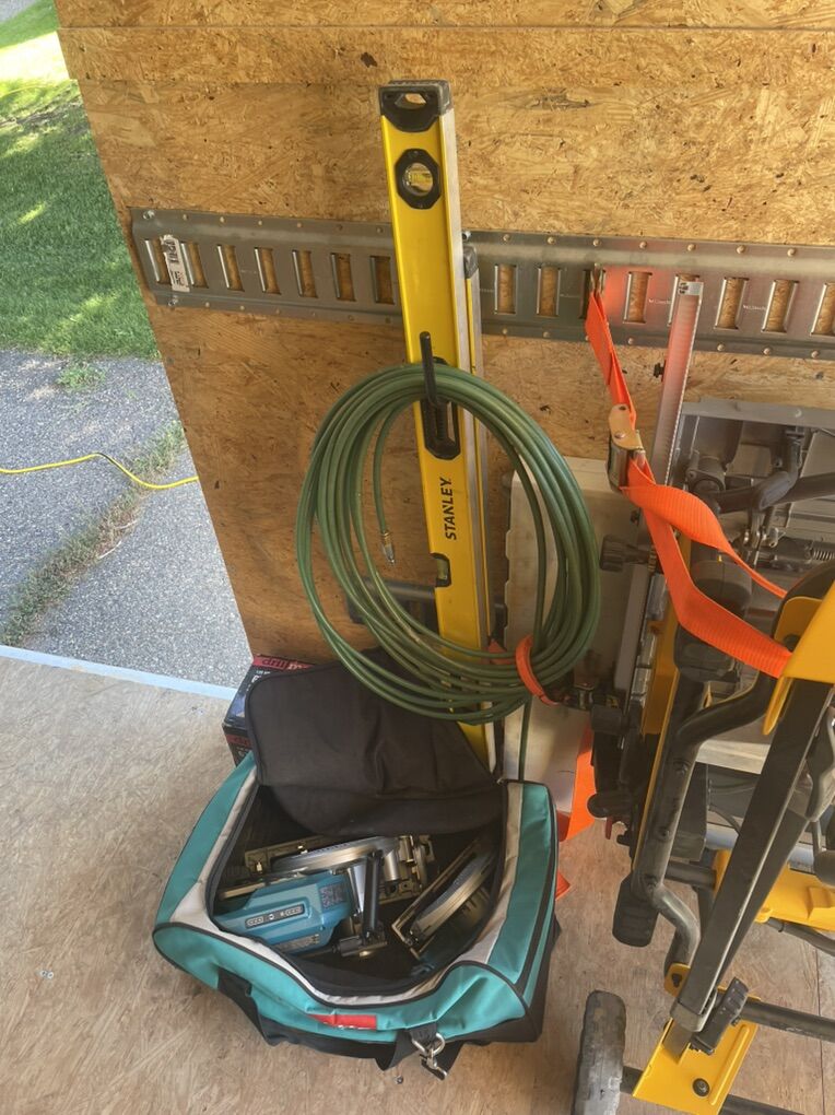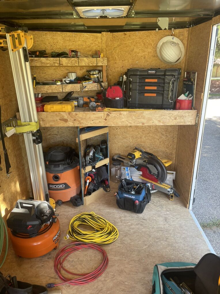 Trailer with all tools. Set up for framing and finish carpentry work. Very well taken care of and maintained. Comes with new spare jack.