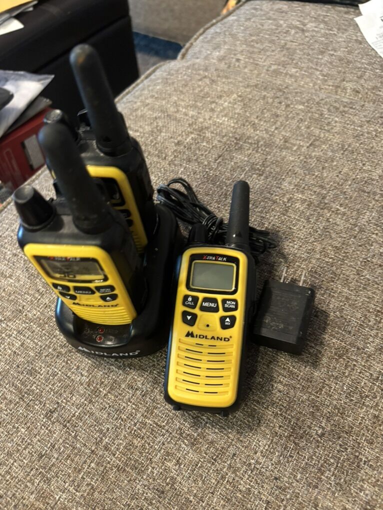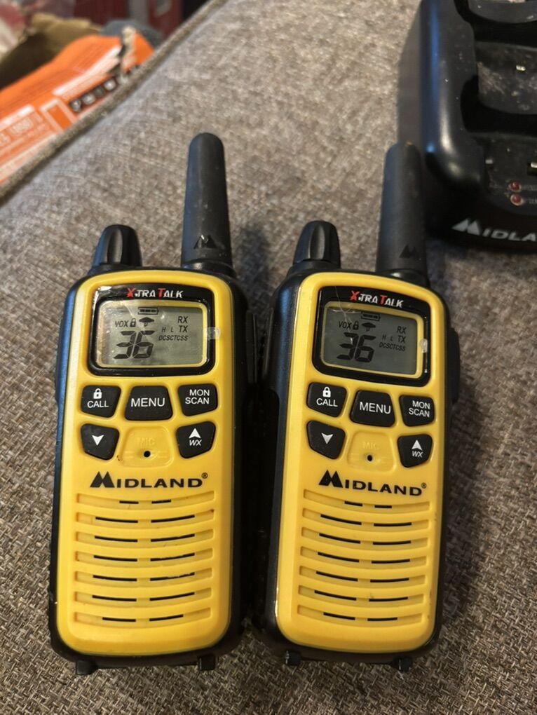 Wow, nice set of midland xt 2way walkie talkies! These are in great overall condition, some minor scratches and scuffs from storage. This set of walkie talkies is 89.99 on Amazon now as shown in photos! Don’t pay retail prices, call Dustin now instead at 801-205-3404, I need them gone!