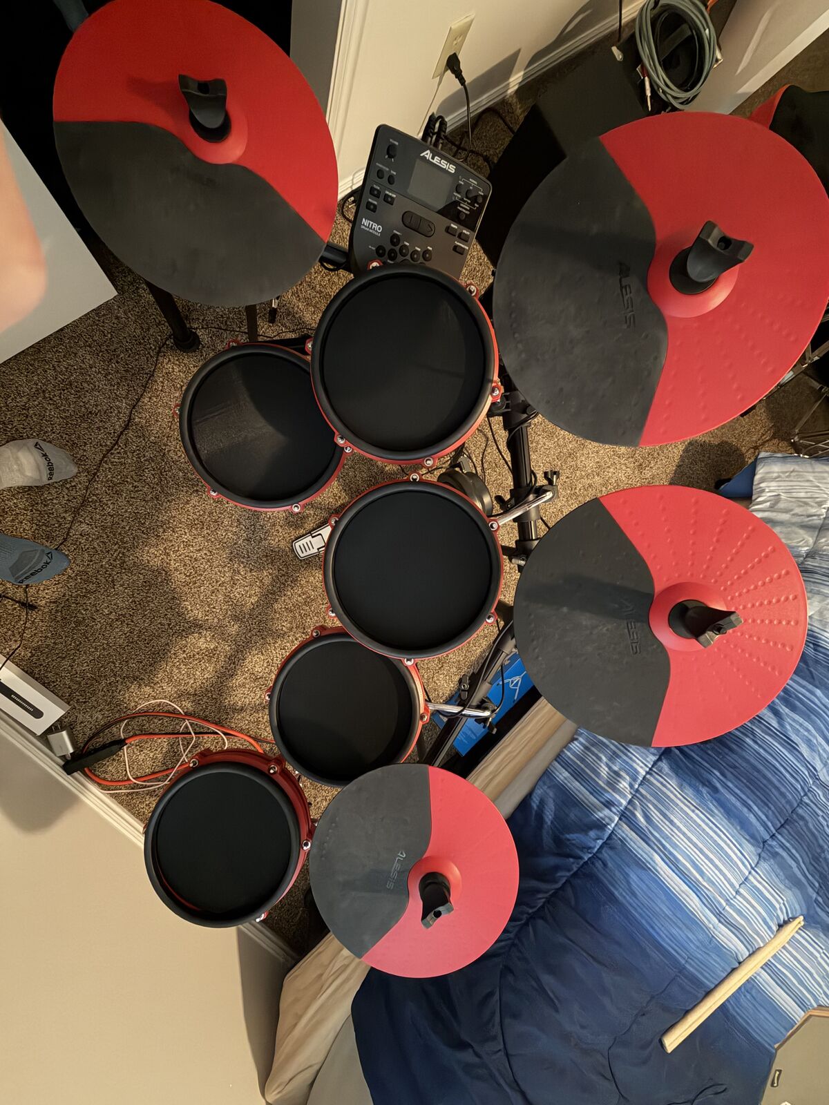 Alesis nitro mesh pro. Includes expansion pack. Has everything you need to play it. A couple years old but I never use it