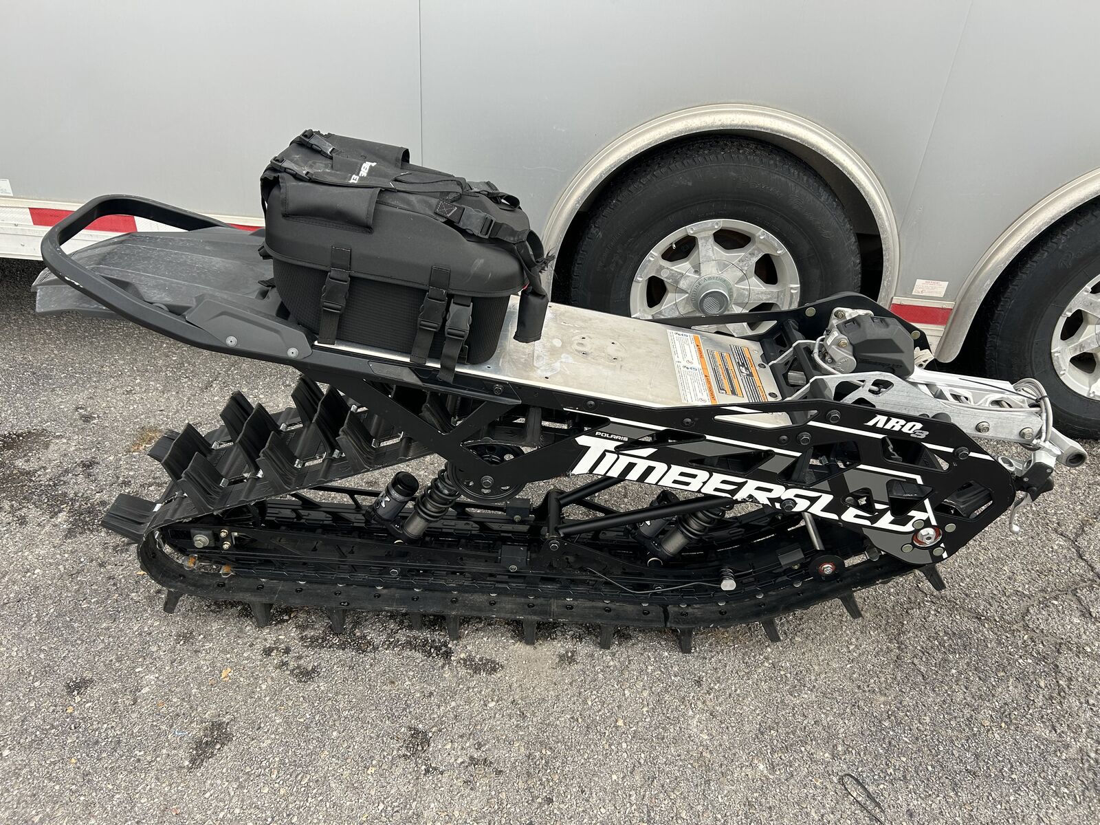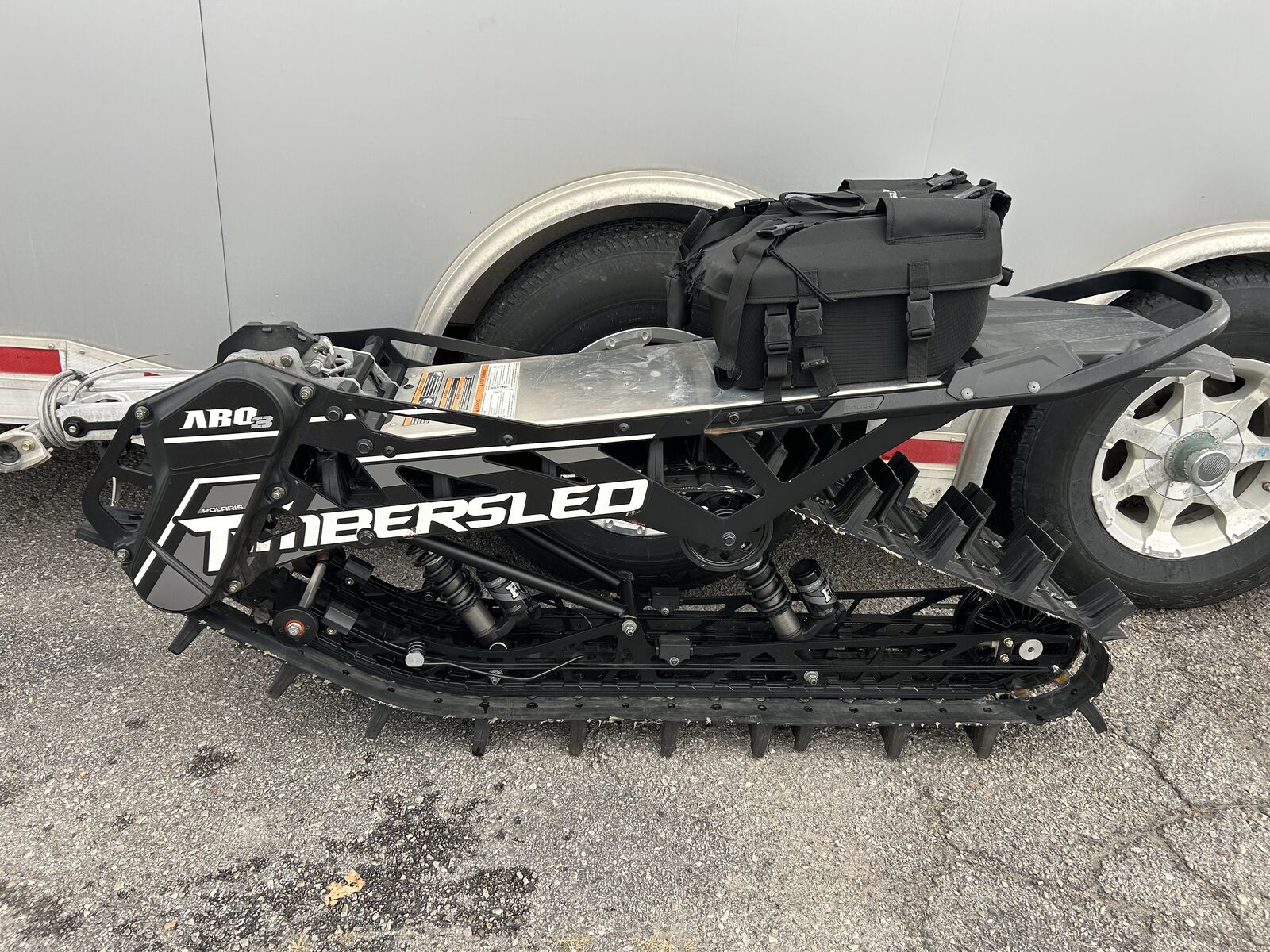 PayPalThis is a lightly used 2023 Timbersled ARO 3 Pro. This is the 2nd generation of the ARO 3 with the narrower slide rails and more durable track. The 129 track floats on the snow really well, and the 3 inch lugs make for killer traction. This is the Pro kit, so it has the very best Fox shocks with quick compression adjust and Quick Drive belt drive system. The belt drive puts the power to the snow and is basically zero maintenance. This kit comes with a tunnel bag. It's in great condition and is ready for your bike today! We can help with fit kits and any other snowbike accessories that you need.