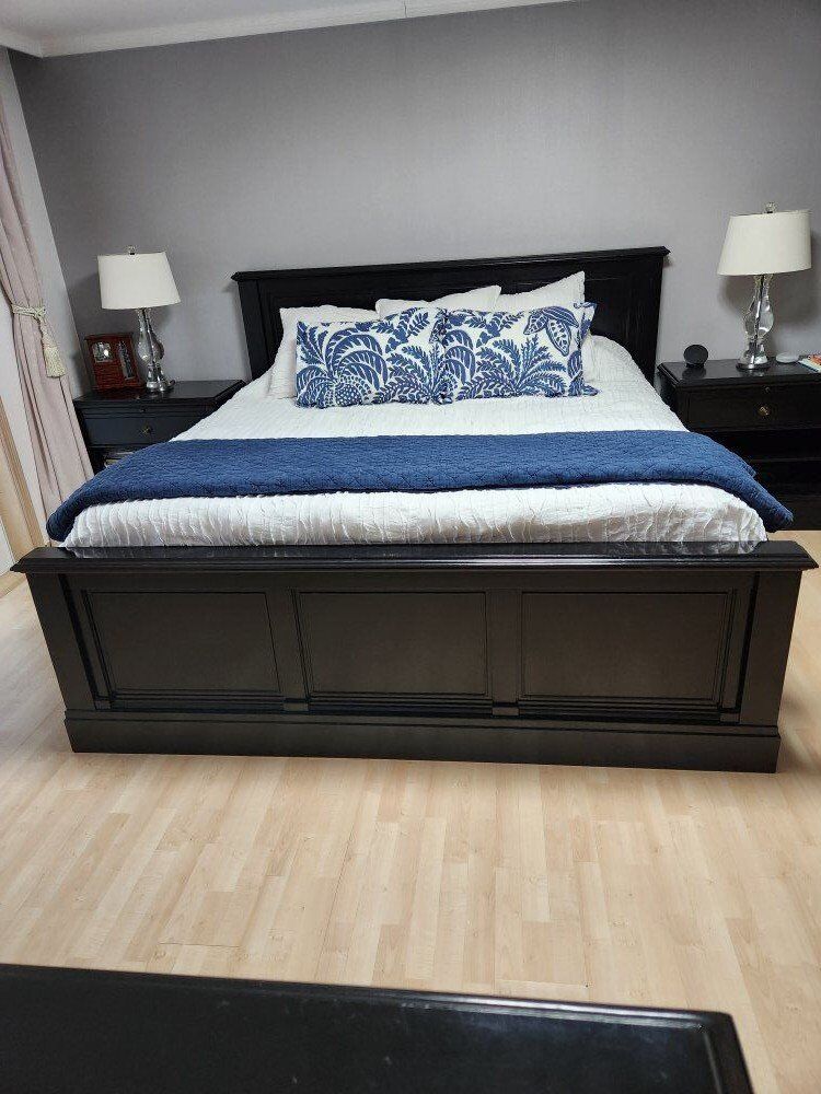 Dresser and Bedside Tables are detailed with decorative drawer pulls with an antique finish.