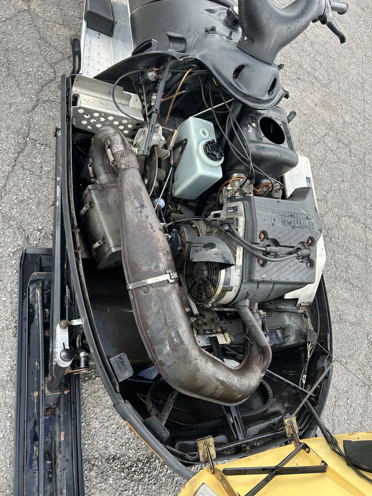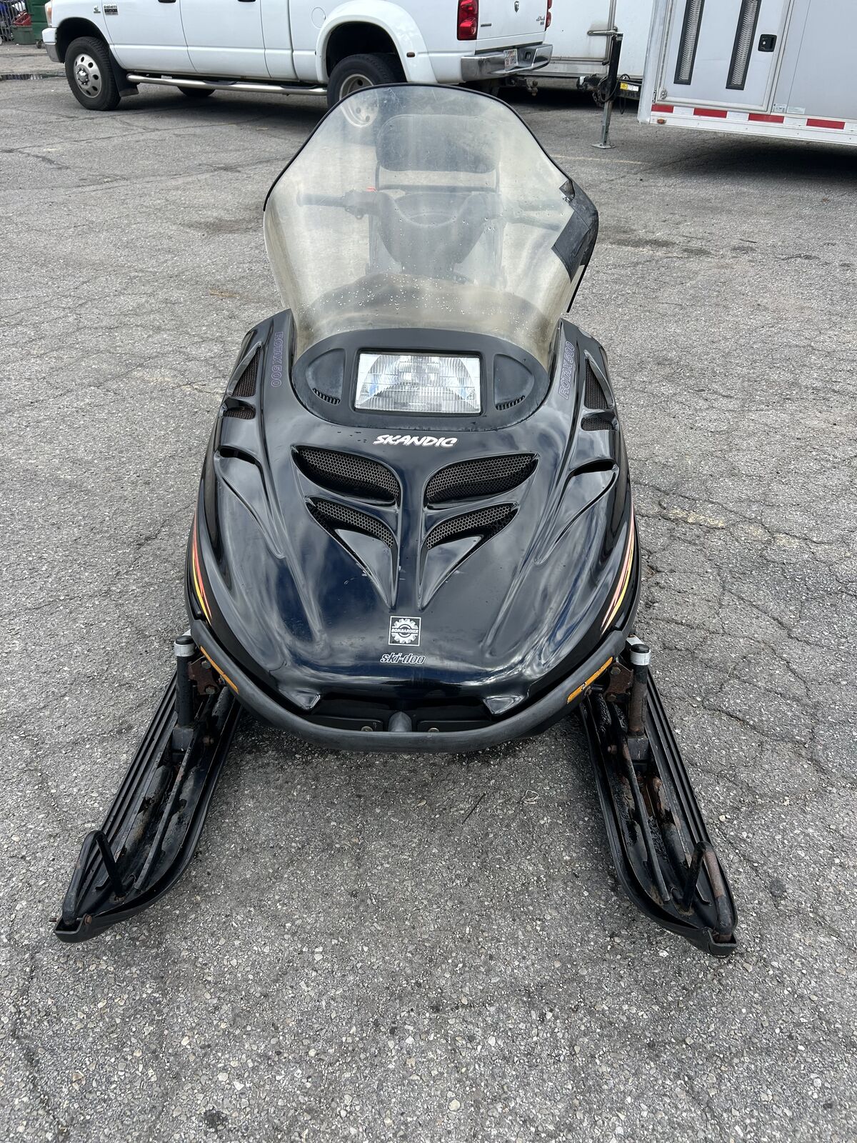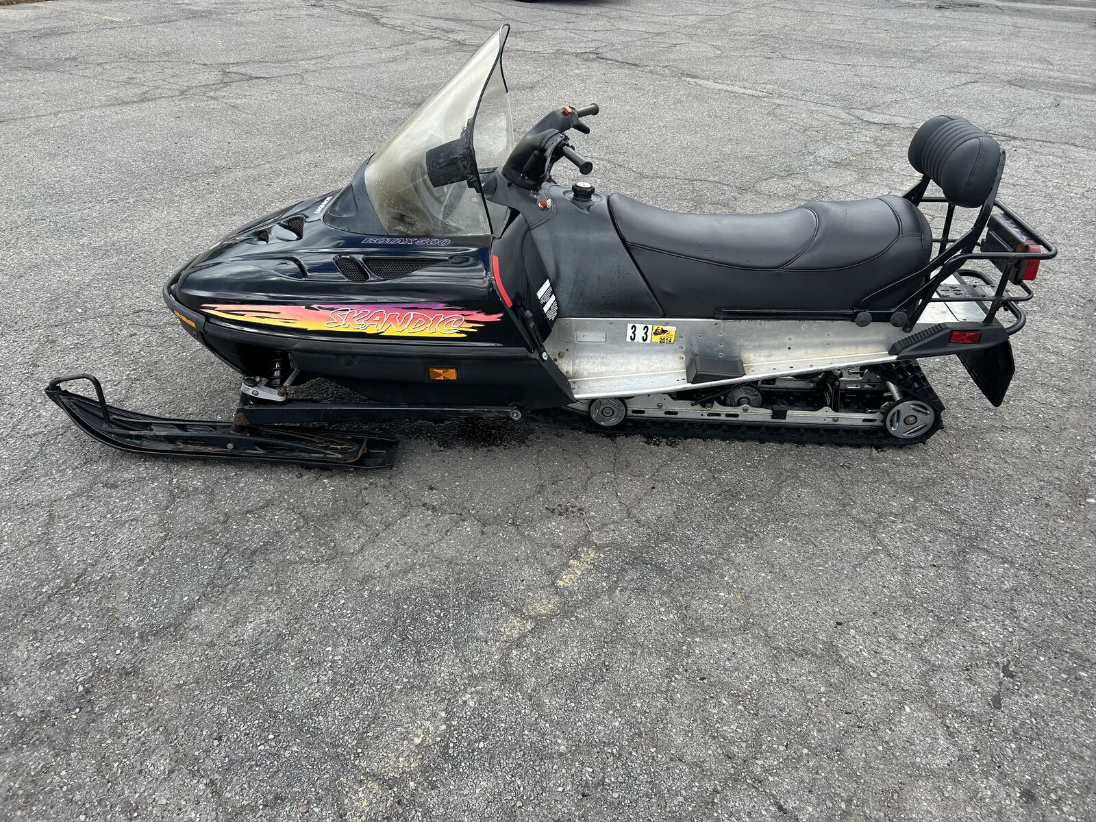 Zelle1996 Ski Doo Skandic 500f. This is a 500cc fan cooled 2 stroke. It makes good power and fan cooling makes it easy to not overheat in low snow conditions. It's truly a workhorse with lower gearing, durable hitch, and wide skis. The 2 up seat is comfortable for rider and passenger. The seat cover was recently replaced. This sled has been used as a cabin cruiser, sometimes with a dogsled, for the last 6 years. It would make a great ice fishing snowmobile too. Mechanical reverse makes it easy to get off the trailer or in and out of a garage. It's in good shape and is ready for the season!