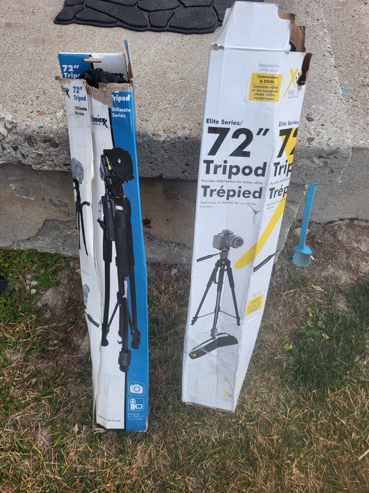 I have 2 tripods. both are 72". I don't think they have been used, I'm cleaning out my mom's garage and found them in there. $15.00 each or 25.00 for both. cash only
