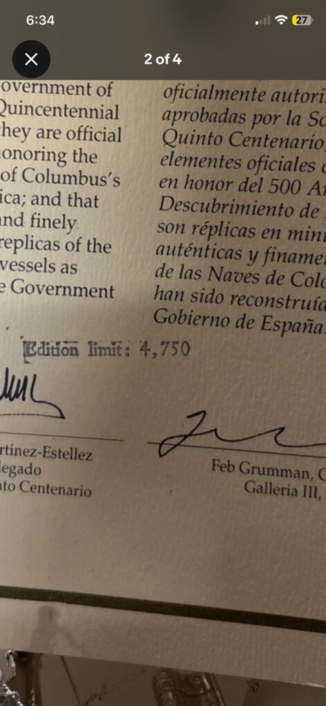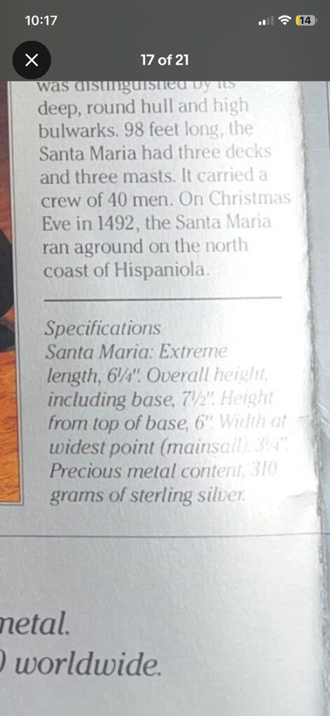 Rare Limited Edition Sterling Silver Santa Maria Ship Model – 310g of sterling silver without the base. Official 1992 Columbus Commemorative w/ Certificate Over 700$ in just melt value!