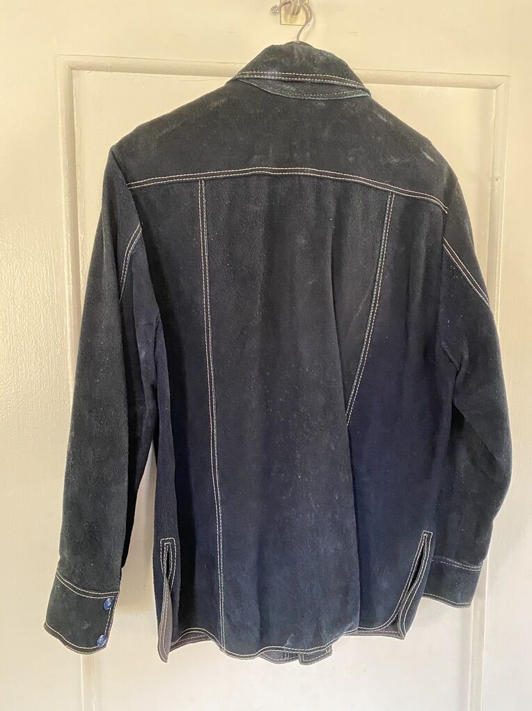 Dark blue vintage antique suede leather jacket in size 46 (fits like extra large). Made by Lomell of California in Mexico. Cash only. Pick up near downtown Salt Lake City. Cash only.