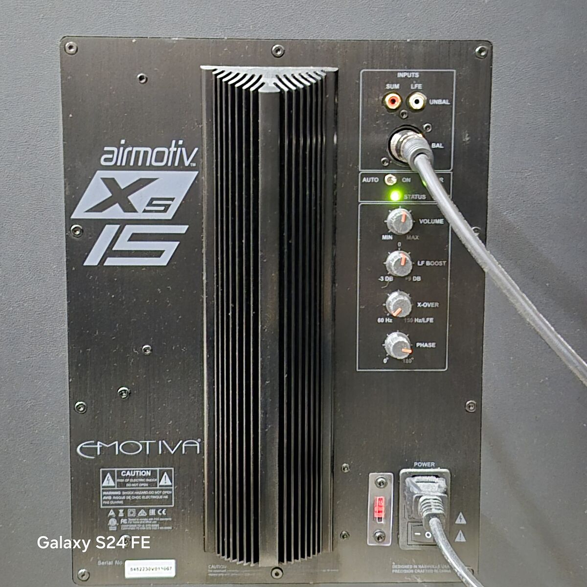 CashAppEmotiva Airmotiv XS15 is a powerful premium subwoofer with a massive 15—inch direct-emitting woofer/ported and a 600-watt audiophile-grade A/B amplifier, allowing you to convincingly and brilliantly expand the bass response of your audio system to reproduce several critical bass octaves thoroughly and subtly. LF reponse 20 +/- 3 db. Dimensions 23-5/8" high x 19-3/4" wide x 24-1/2" deep. Boxed weight 136 lbs. The subwoofer is the first of many components to be sold.