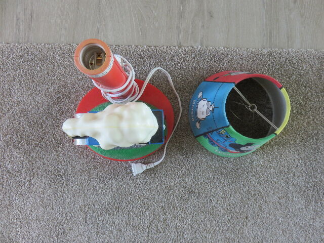 As the pictures show, this lamp is in like new condition, and the Shade is as well; due to its very short usage. It has been in a sealed box for the last 33 years, so time to let some other child enjoy it.