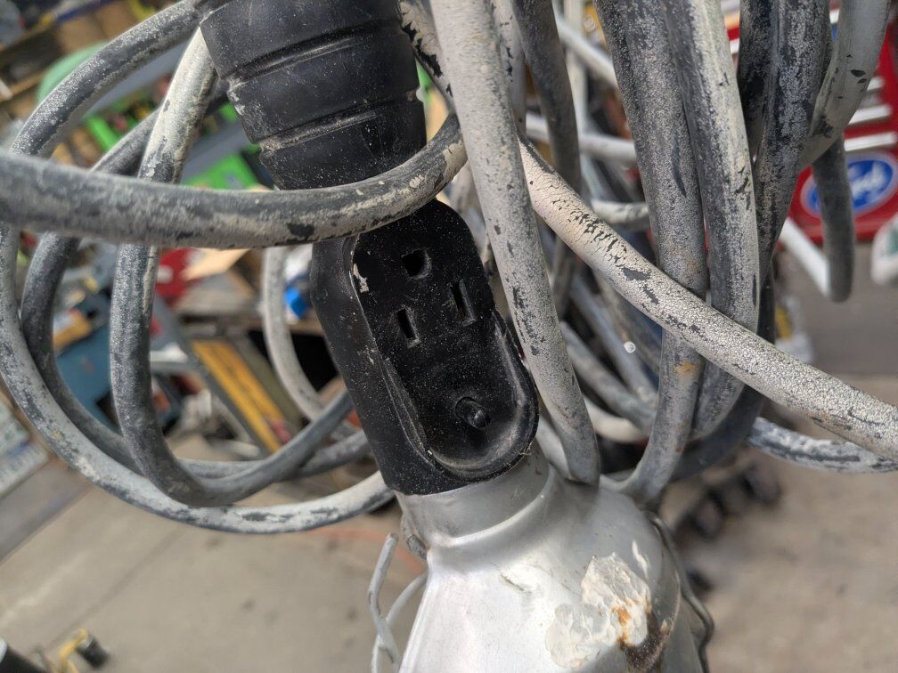 Works great. At least 50 ft of extension cord on it. Outlet on trouble light allows you to plug in other devices at the same time.