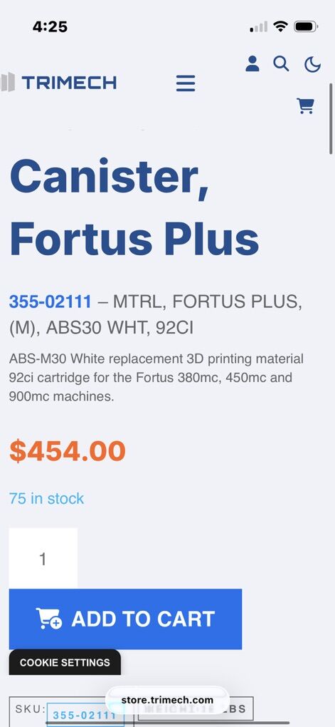 ZelleNEW Stratasys FDM Plus 92 ABS-M30 (White) Filament Canister Fortus PN 355-02111