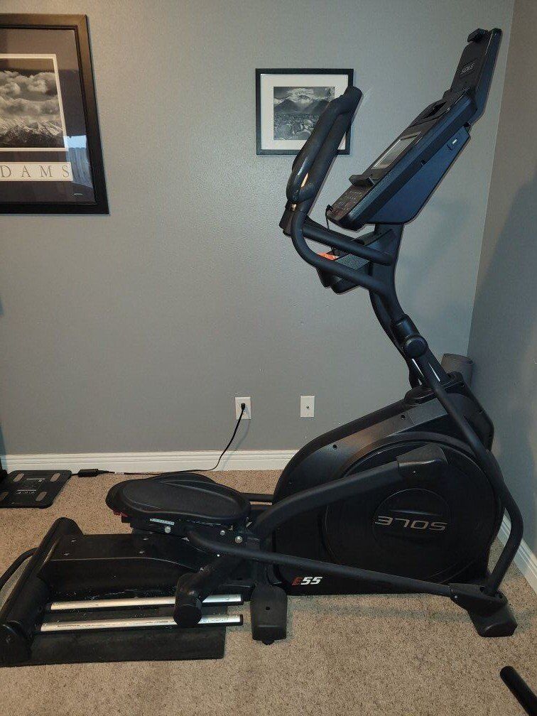 SOLE E55 Elliptical.Excellent condition...Drive: Front-drive with a 20 lb flywheel...Its Super easy to move around..Lift up,and it has wheels in the front.. Stride: Comfortable 20-inch stride length. Incline: 1-20 levels of power incline to target different muscles. Resistance: 20 levels of magnetic (ECB) resistance. Display: 9-inch LCD screen with workout programs, metrics, and Bluetooth connectivity. Connectivity: Bluetooth for speakers, USB charging, and app integration (Sole's app, Apple Health). Comfort: Oversized, articulating pedals; stationary and moving handlebars; built-in cooling fan. Heart Rate: EKG grips and included wireless chest strap. Build: Heavy-duty frame (214 lbs) with a 375 lb weight capacity.These Ellipticals sell easily for $1,200 to $$1,800 .This one has not been used much...I am Selling for $600..Call Ryan @ 801-577-7302
