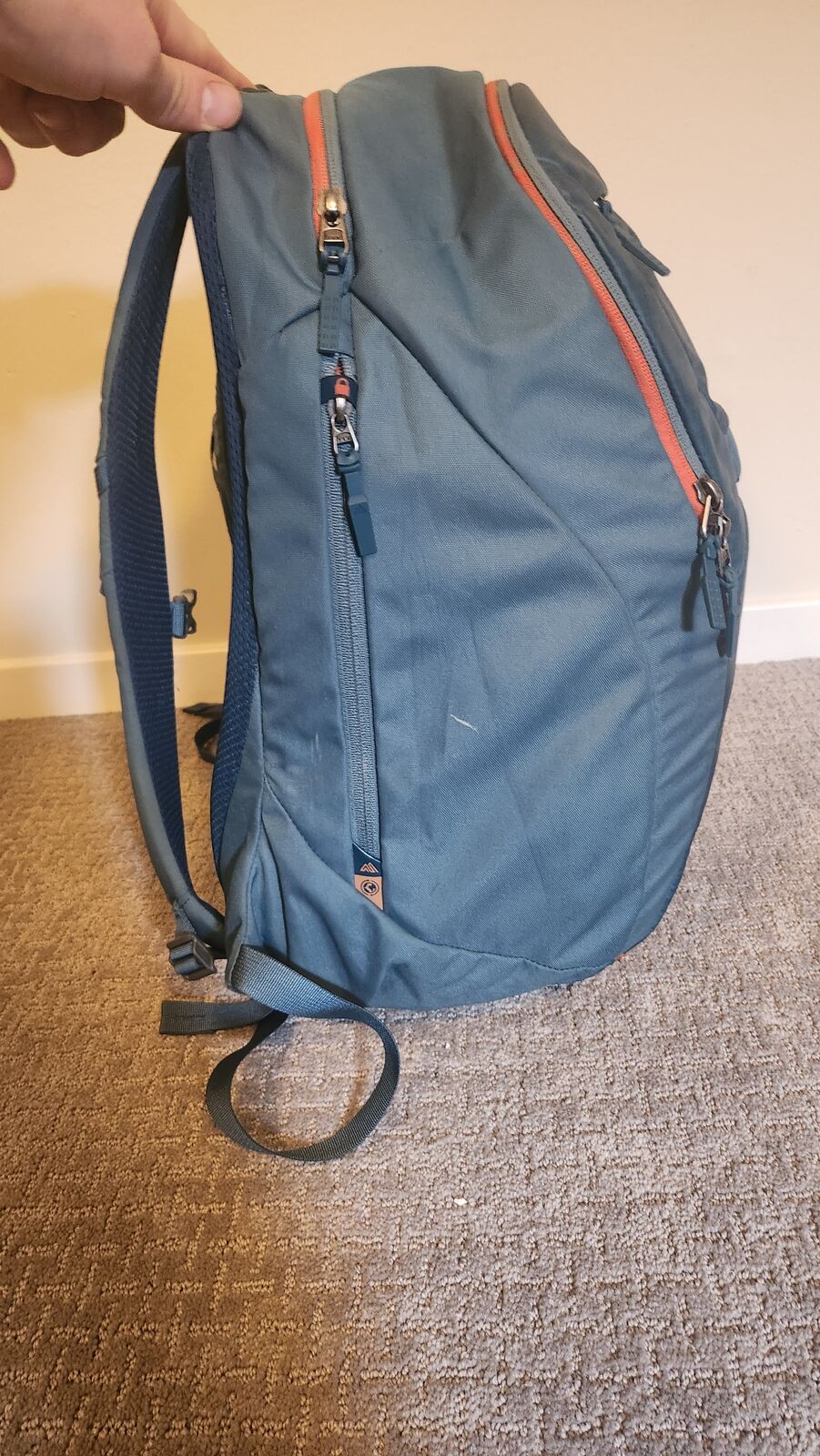 Description: Great commuter Bag, Has a lap top sleeve and various bits of organization through out. It's been lightly used, so there are minor marks or scuffs through out.