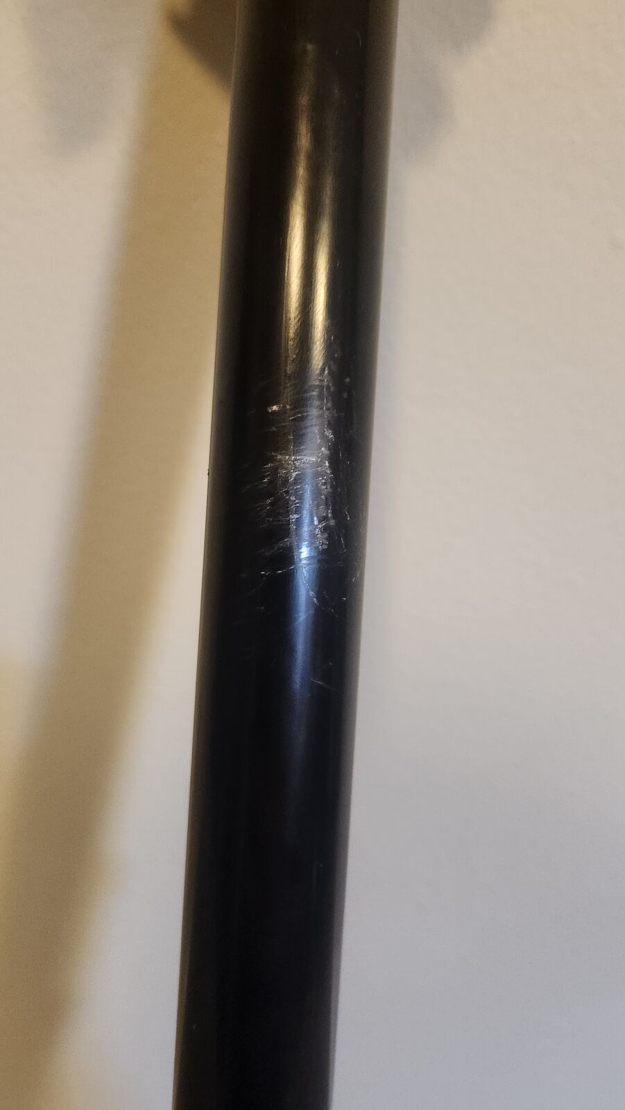 There is scuffing on the post from a brake lever on a bike rack, it does not affect function or cause any leaks.