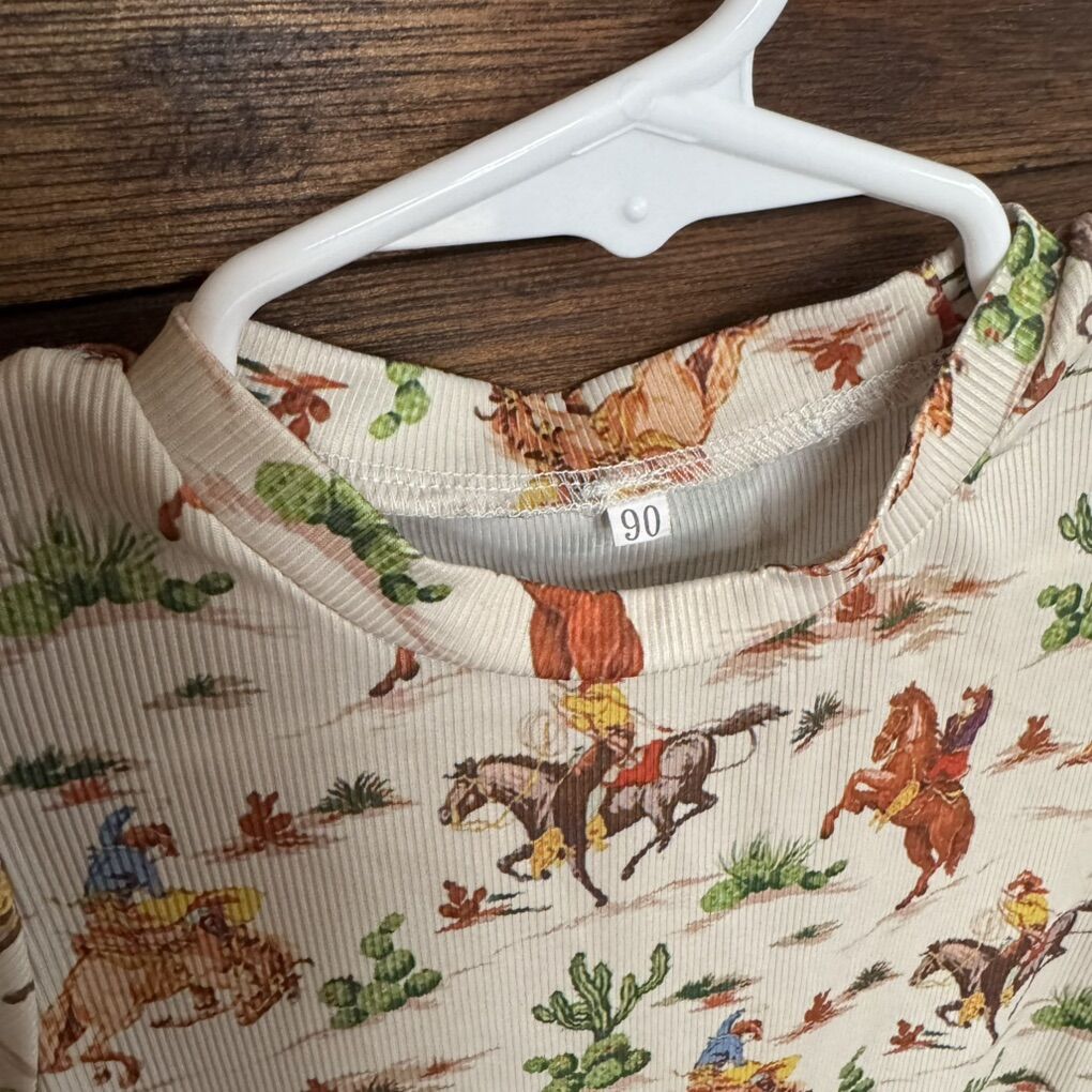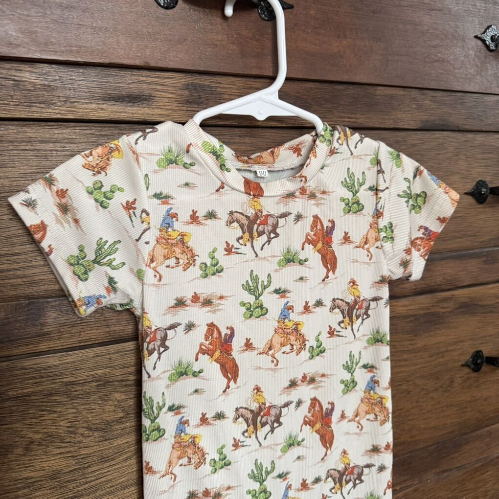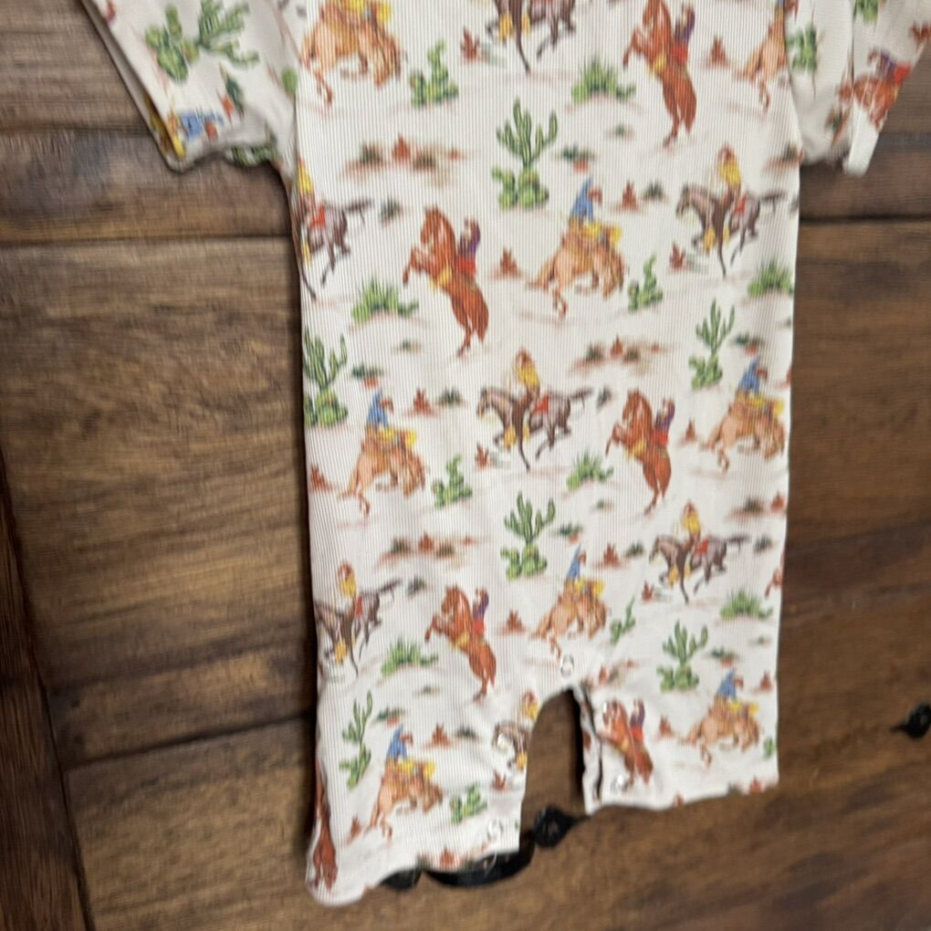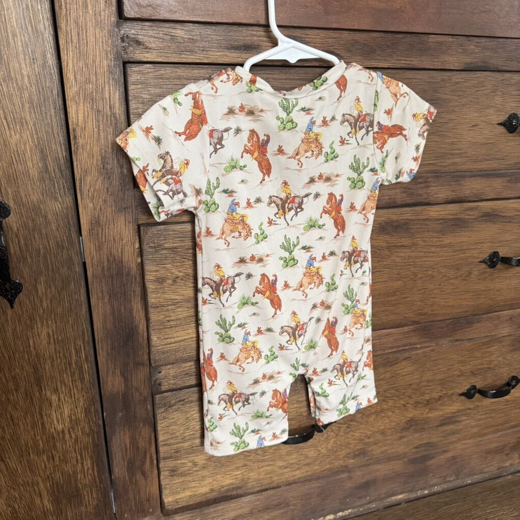 Baby Toddler Girl Boy Western Romper 18- 24M Short Sleeve Round Neck Bull/ Cactus/ Horse Print Summer Short Jumpsuit
