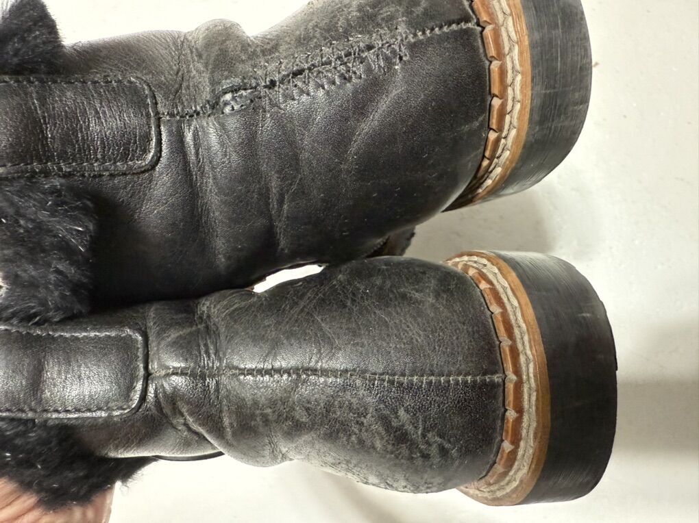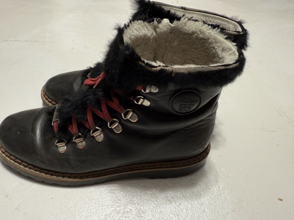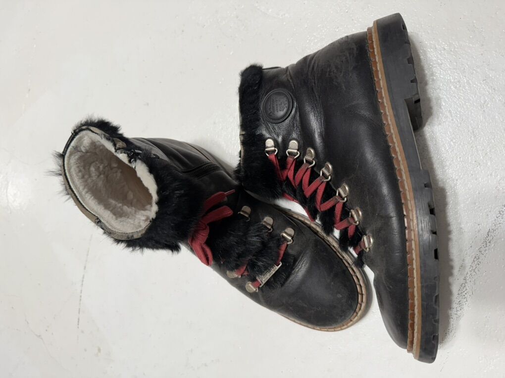 Ammann leather splugen women’s boots size 40 (9 1/2 U.S.) black they do have scuffs ,been repaired and missing some fur. Very comfy shoes!