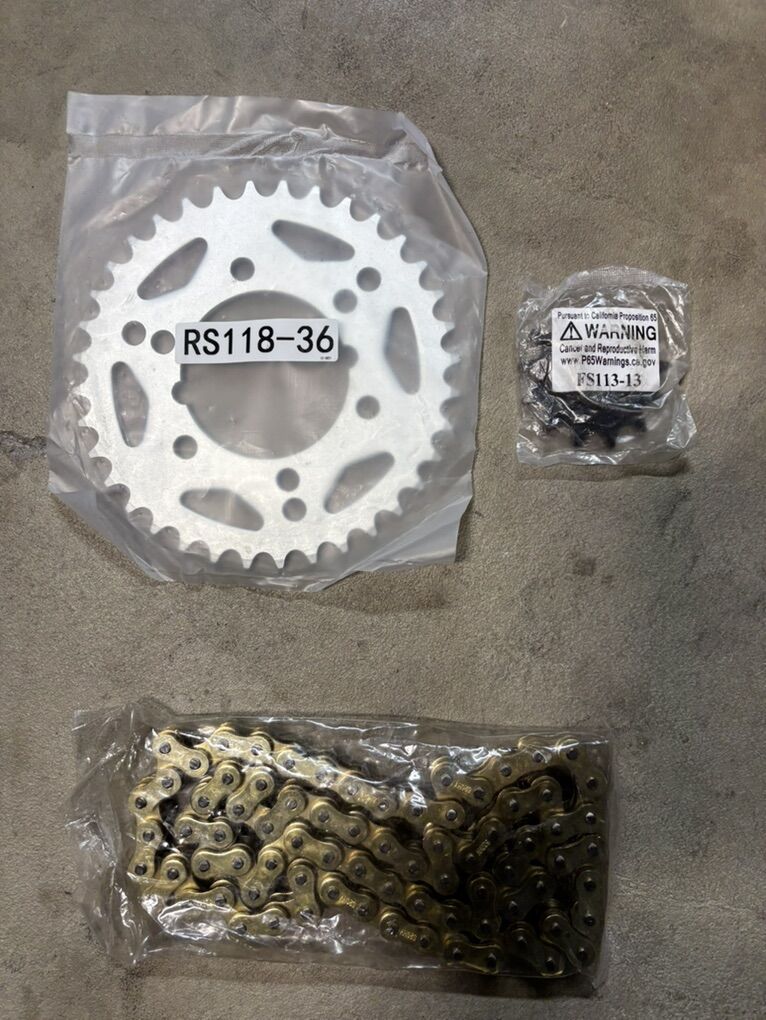 New kit 120 link cut to fit I bought 3 extra master links for it sold my scrambler never installed kit