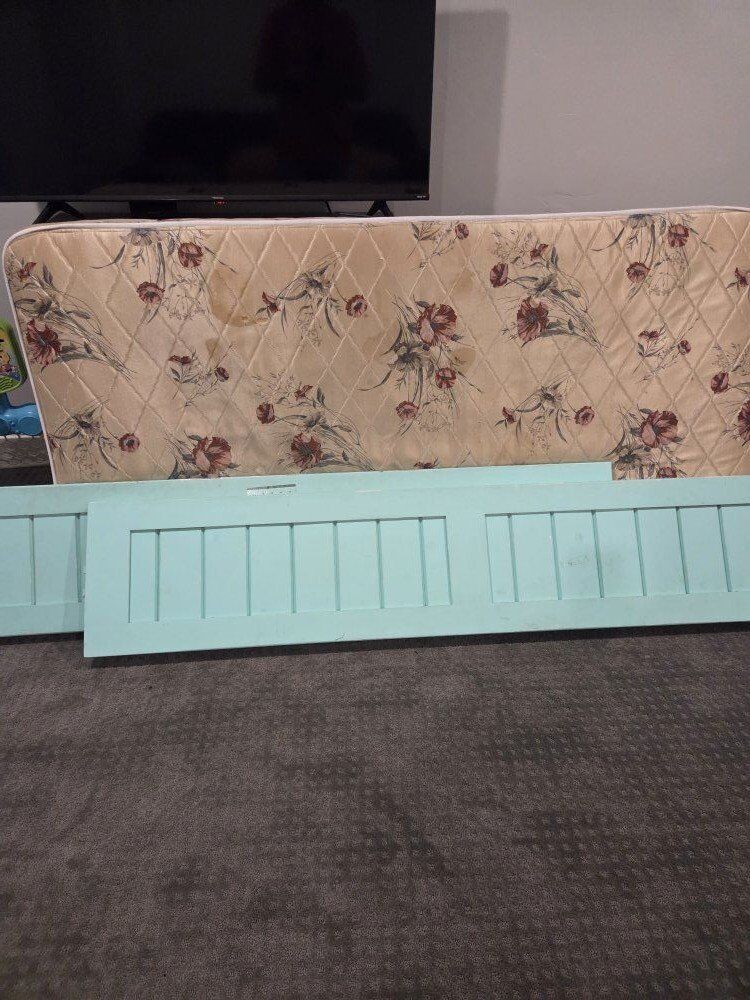 VenmoTwin bed frame & 2 mattresses in good shape! It has slats, so no box spring needed $25 obo Thanks for looking!