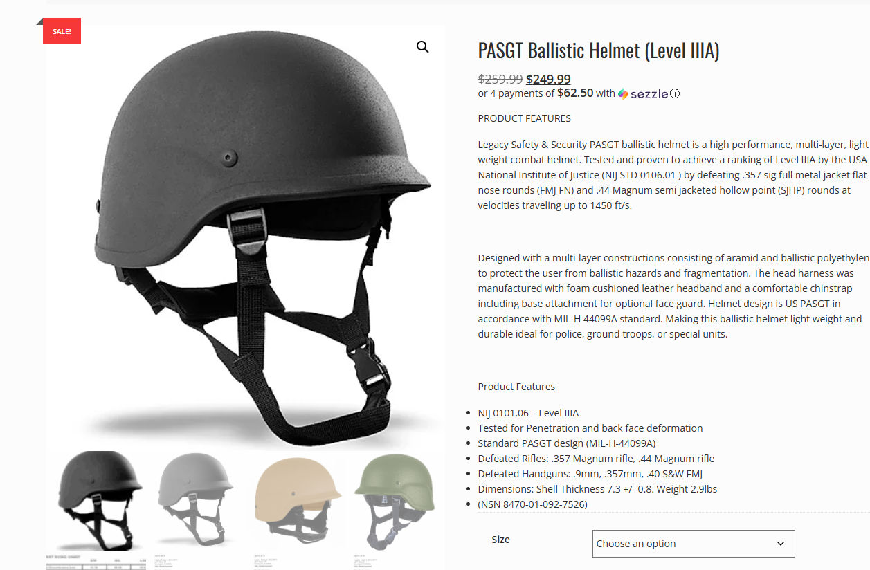$100 OBO New, Never used. Perfect condition. Comes with original carrying/storage bag. Manufactured in 2020. Color is black. https://legacyss.net/product/pasgt-ballistic-helmet-level-iiia/ Retails new for $259.99