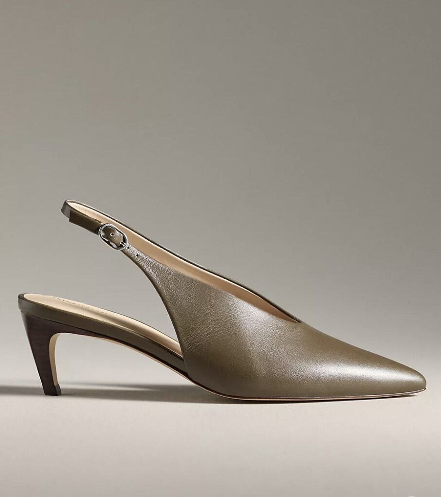 VenmoBrand new pointed-toe slingback pumps in green leather by Anthropologie — never worn.