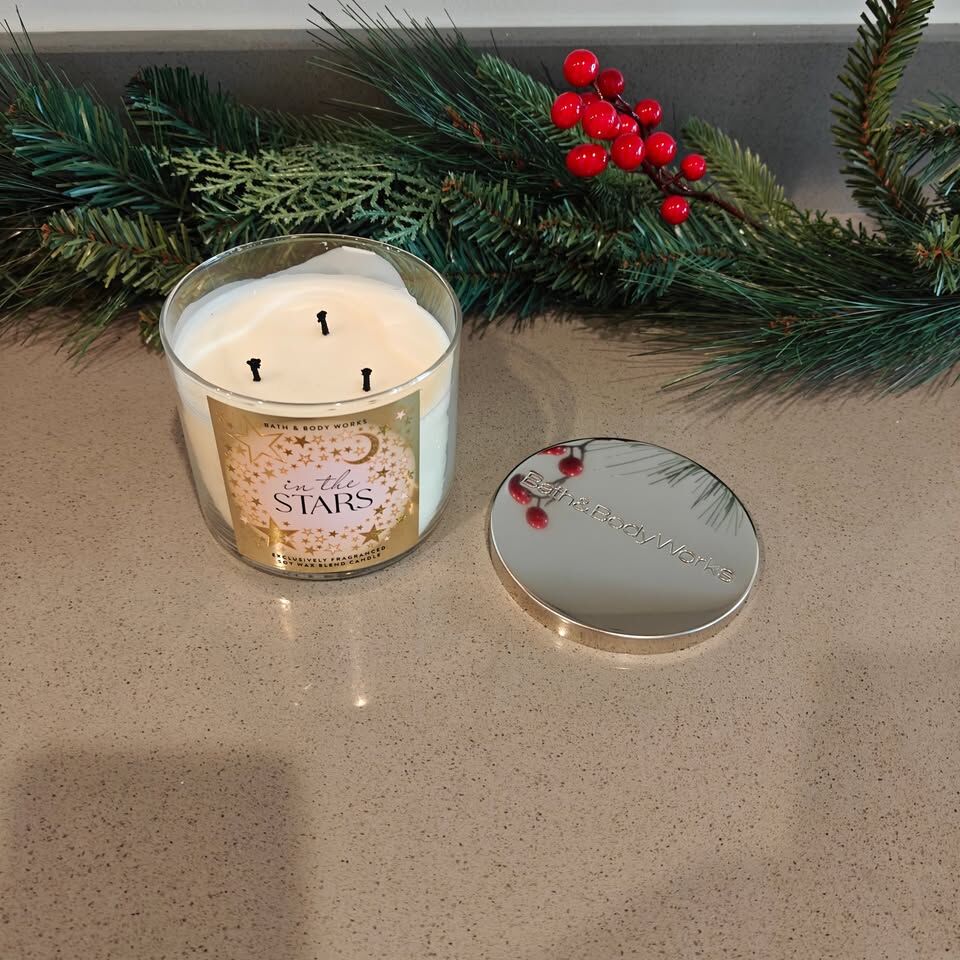 The Bath & Body Works "In The Stars" 3-wick candle is a warm, sparkling, and addictive blend of florals, woods, and warmth designed to deliver a room-filling fragrance experience