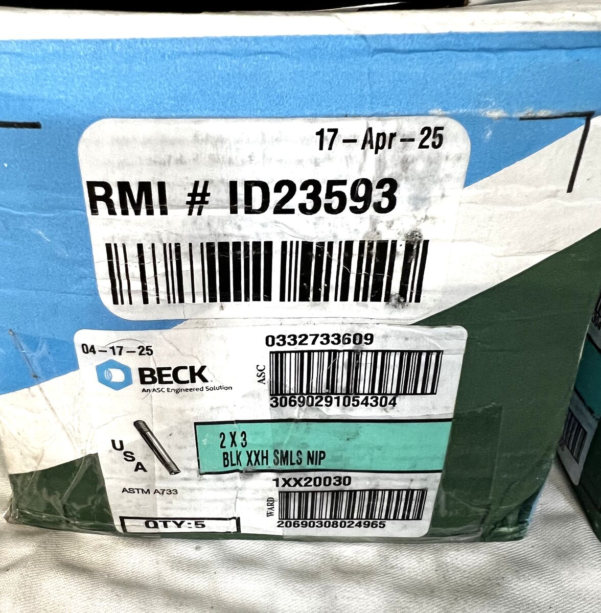 Venmo4 boxes of Beck (ASC) 2x3, Black, XXH schedule, Seamless Nipples, 5 nipples per box, brand new. Part Number: 0332733609