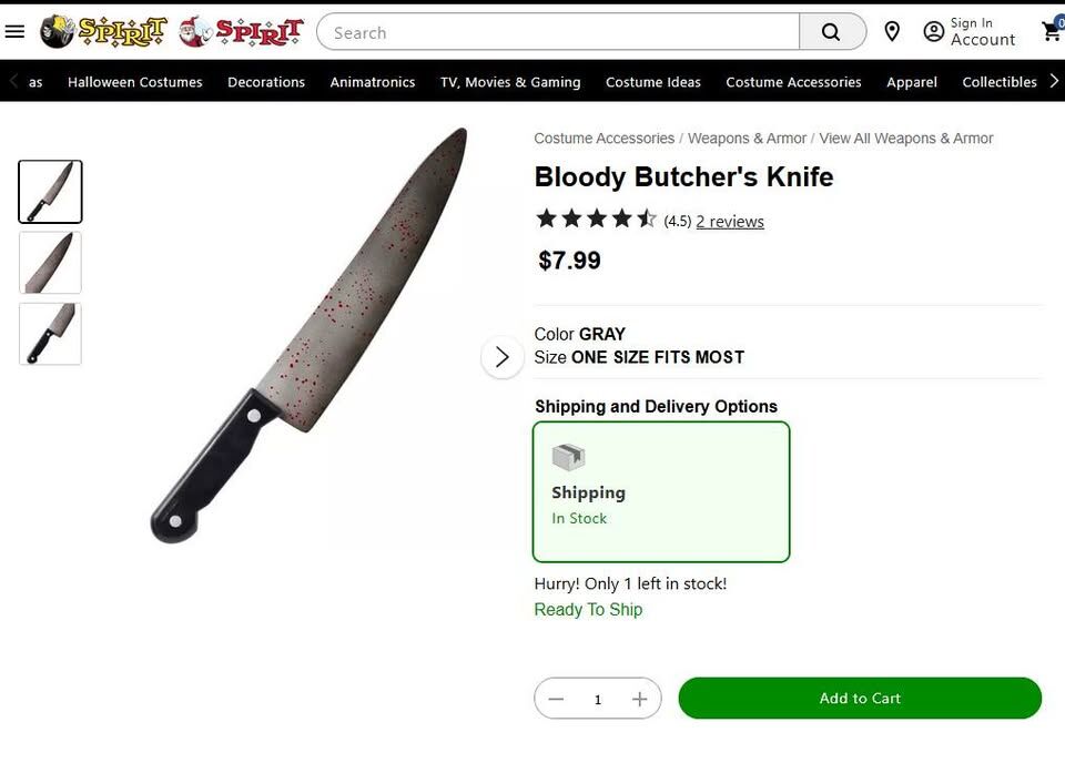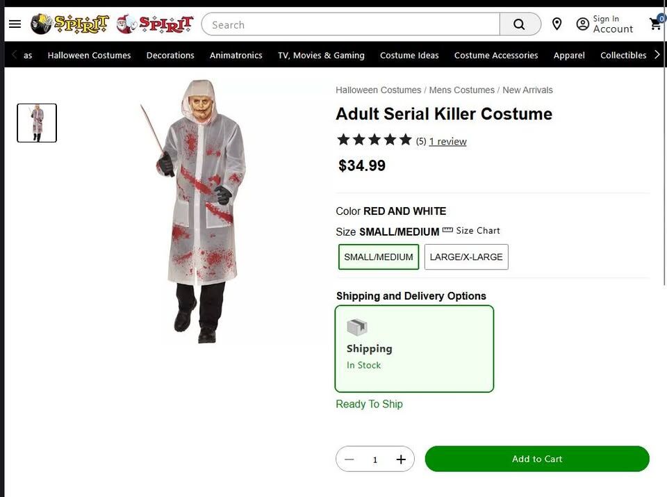 Get ready to scare! 🩸 Step into Halloween with this NEW Spirit Halloween Serial Killer Costume, complete with a bloody butcher knife for maximum fright. Perfect for parties, haunted houses, or trick-or-treating!