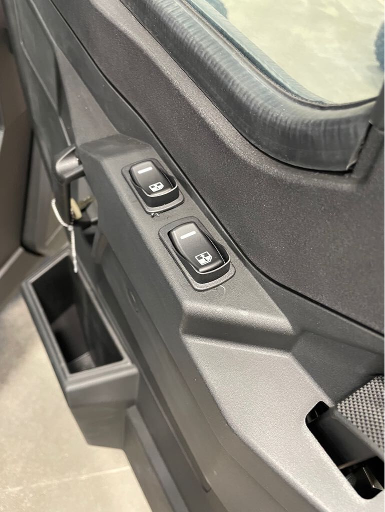 Enclosed cab with full glass tip-out windshield & powered front windows