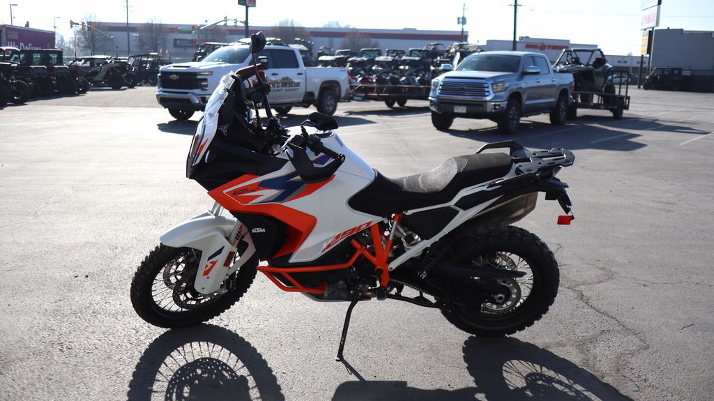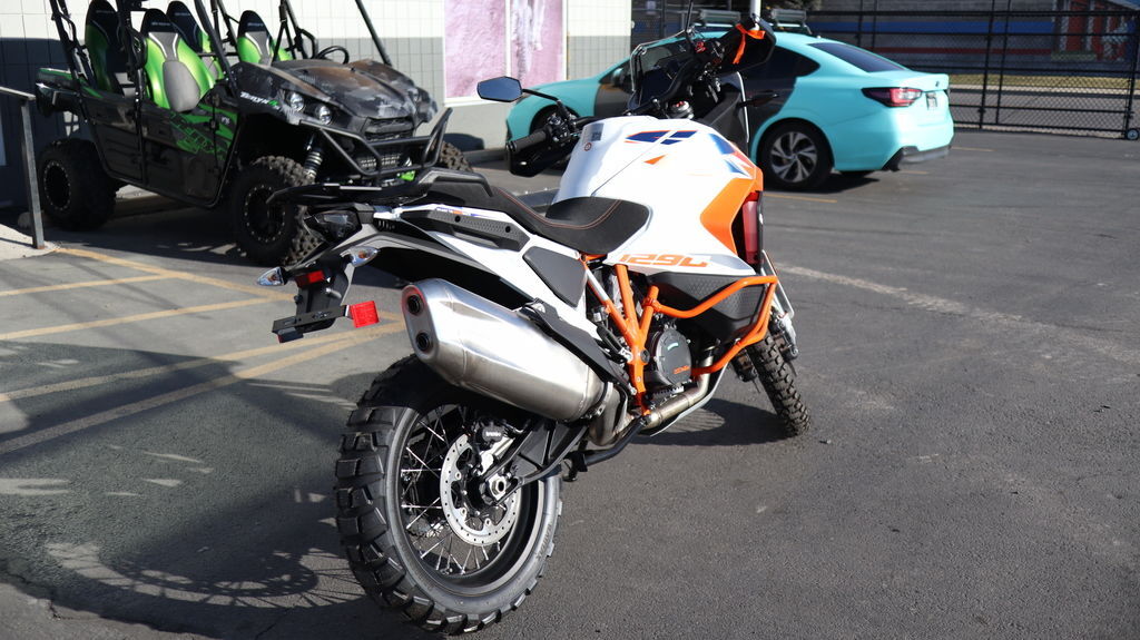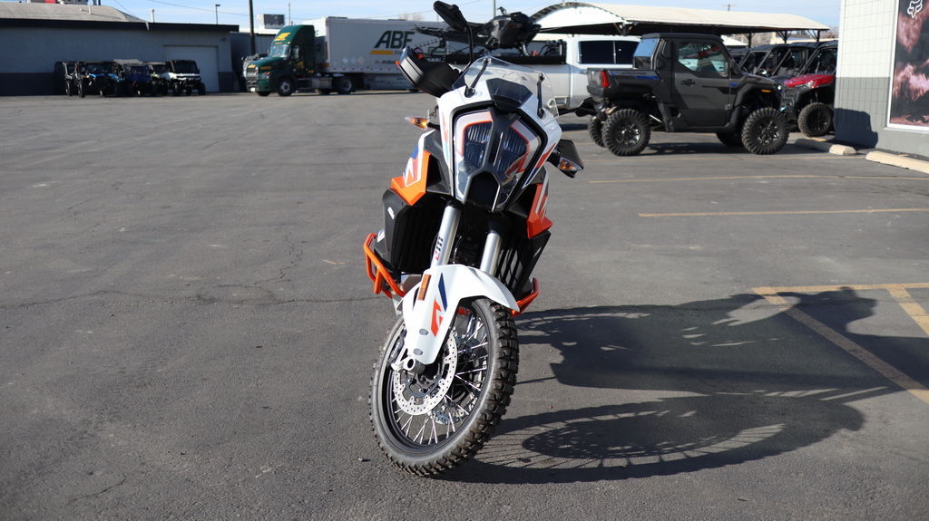 2024 KTM 1290 Super Adventure R SEEK UNCHARTED TERRITORY From the Skeleton Coast to the Himalayas, the KTM 1290 SUPER ADVENTURE R is engineered to cross the wildest, most challenging terrain with unmatched ability and class-leading performance. Not only has it proven itself to be without peers in the large-capacity extreme adventure segment, but it also remains the ultimate READY TO RACE choice in travel machines for hardened cross-country nomads. Features may include: ENGINE & EXHAUST Engine With a sledgehammer hit of power and earth-twisting torque, the proven V-twin LC8 engine once again takes the accolades as the most compact, lightest, and best performing engine in the segment. Its greener too, and will deliver 15,000 km service intervals and low fuel consumption, trip after trip, mile after mile. Transmission Helping the KTM 1290 SUPER ADVENTURE R shift - in more ways than one - is a 6-speed PANKL transmission with a new, lighter aluminum shifting drum with optimized tracks for faster, smoother gear changes. Shifting forks have also been coated in copper to reduce wear and tear. This also helps the Quickshifter+ engage quicker for ultra-fast, slick gear changes. CHASSIS Frame A new, reworked, and lightweight, chrome-molybdenum stainless steel trellis frame featuring laser-cut tubes, combines with forged elements for an ultra-strong component on the KTM 1290 SUPER ADVENTURE R. The steering head has been moved 15 mm rearwards, to shorten the overall frame for improved cornering behavior, while the front engine mount has been rotated forward by 2 degrees to aid in hard acceleration, keeping the front end firmly planted on the ground. Swingarm Extended by 15 mm to optimize tracking stability in conjunction with the shorter frame, the die-cast, open-lattice swingarm retained it's lightweight and pin-point manufacturing to provide stiffness and uncompromised control when hitting the dirt. ERGONOMICS & COMFORT Handlebar Wide, adjustable, and ready for long hours in the saddle, the high-strength tapered aluminum handlebars are designed to provide riders with greater control, and uncompromised comfort. Newly developed and robust handguards have also been designed for optimal aerodynamic behavior when it comes to high-speed stability. Illuminated Menu Switch Illuminated switches don't only look good, but make sense when you're out in low light conditions and need to locate the important buttons in the blink of an eye. BODYWORK & GRAPHICS LED headlight Turning night into day, the LED headlight on the KTM 1290 SUPER ADVENTURE R has been designed to light the way on any adventure. Flanked by cornering and day time running lights. This results in a clean, KTM-distinctive look which provides impeccable illumination with a wide beam pattern to light up the road ahead. SOFTWARE & ELECTRONICS Dashboard Taking charge at the helm is a scratch-resistant 7-inch TFT display. Unmatched in terms of graphics and readability, adventurers can access information on the fly, quickly and easily without navigating complex menus. This comes thanks to a 6-way switch cube on the handlebar and the quick select and favorites buttons. Connectivity is also taken care of by way of KTMconnect, which connects via Bluetooth for Turn-by-Turn+ navigation, music, and even answering calls. Still catching glare? The TFT screen is tilt-angle adjustable.