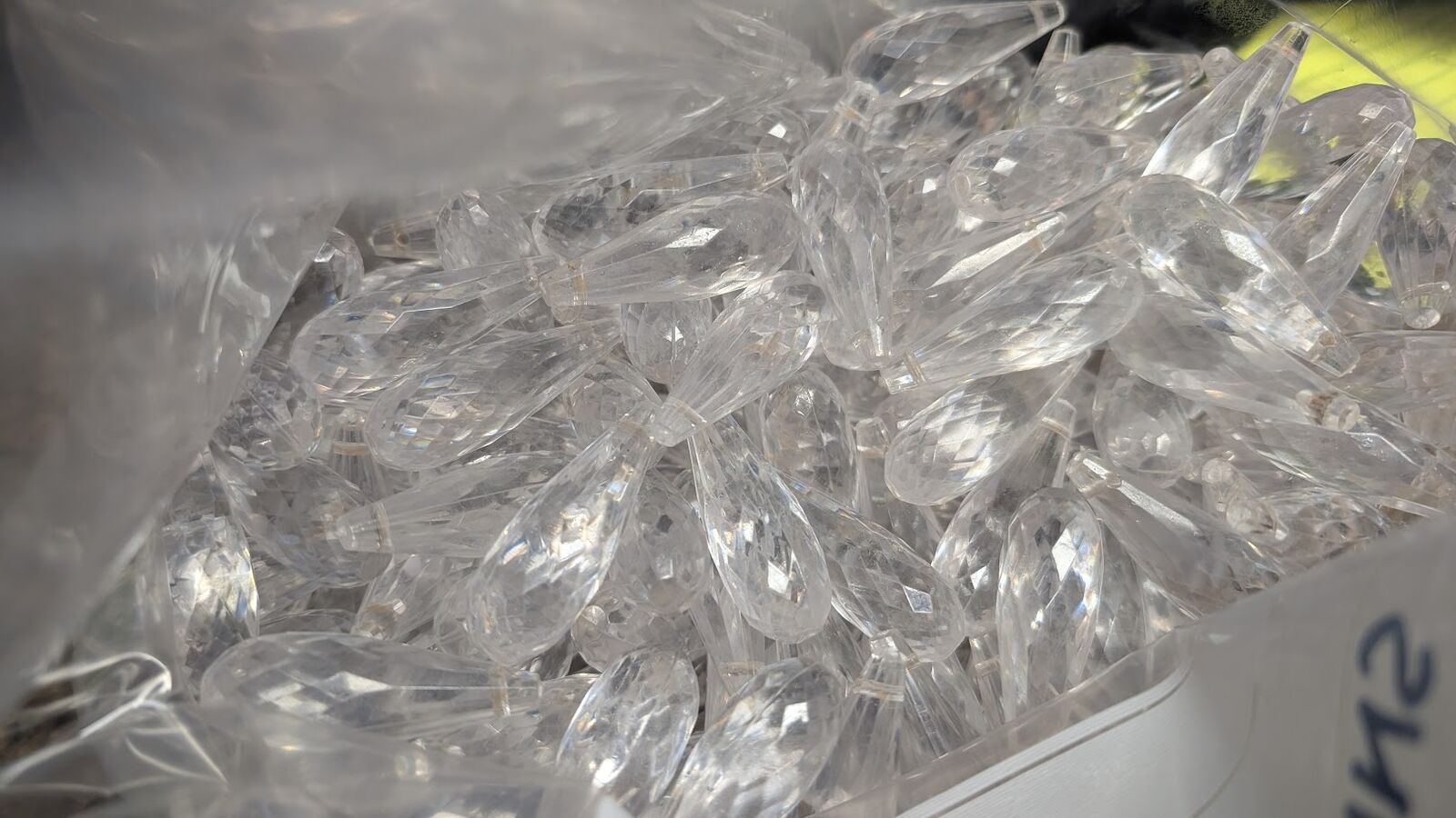 VenmoI'm deconstructing some chandeliers and have a little more than 225 of these 1.5 inch "bowling pin" teardrop faceted crystals. Each crystal has one hole at the top of the crystal to string from. These are perfect for any project where you need lots and lots of these crystals to hang! $80 OBO.