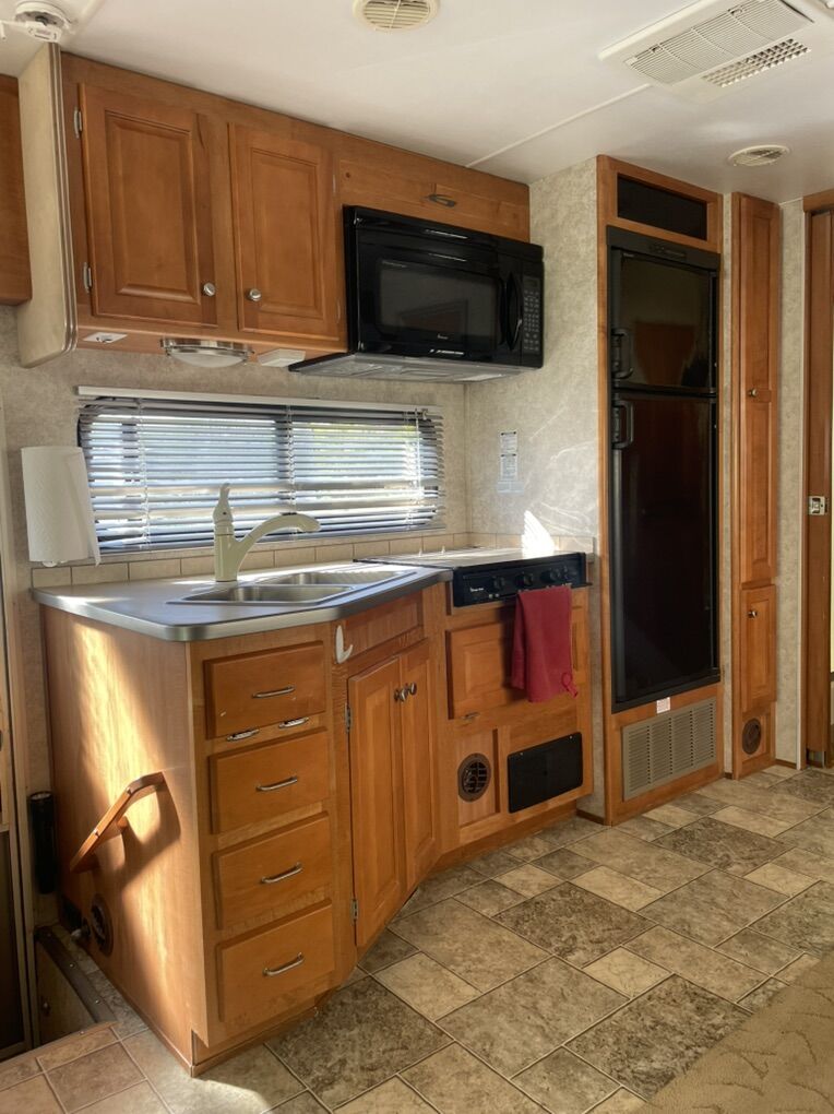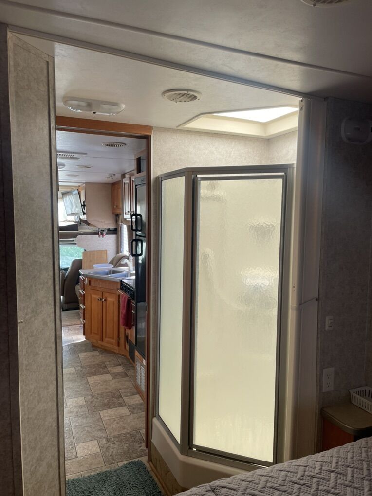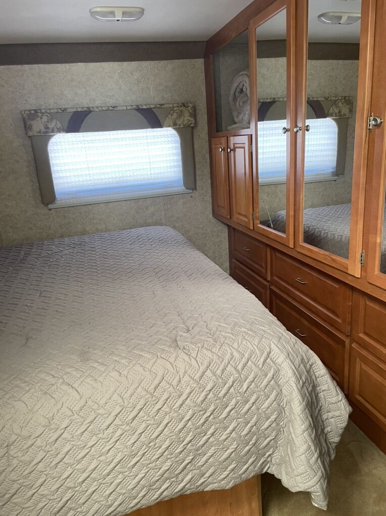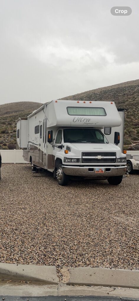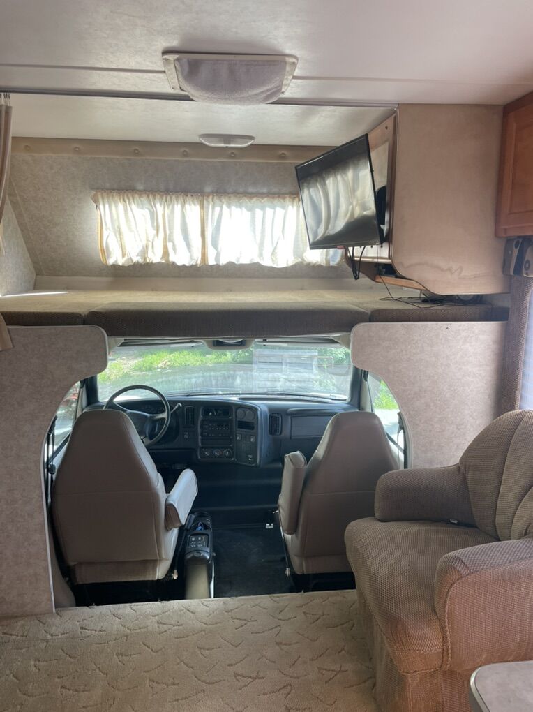 This is an awesome Super C. It has a king size bed in back, 2 reclining chairs, table makes into a bed and the loft can sleep 2. Features 2 slides which make it very roomy and comfortable. I just spent over 10k on a new roof. So, you have no worries for the next 20yrs.