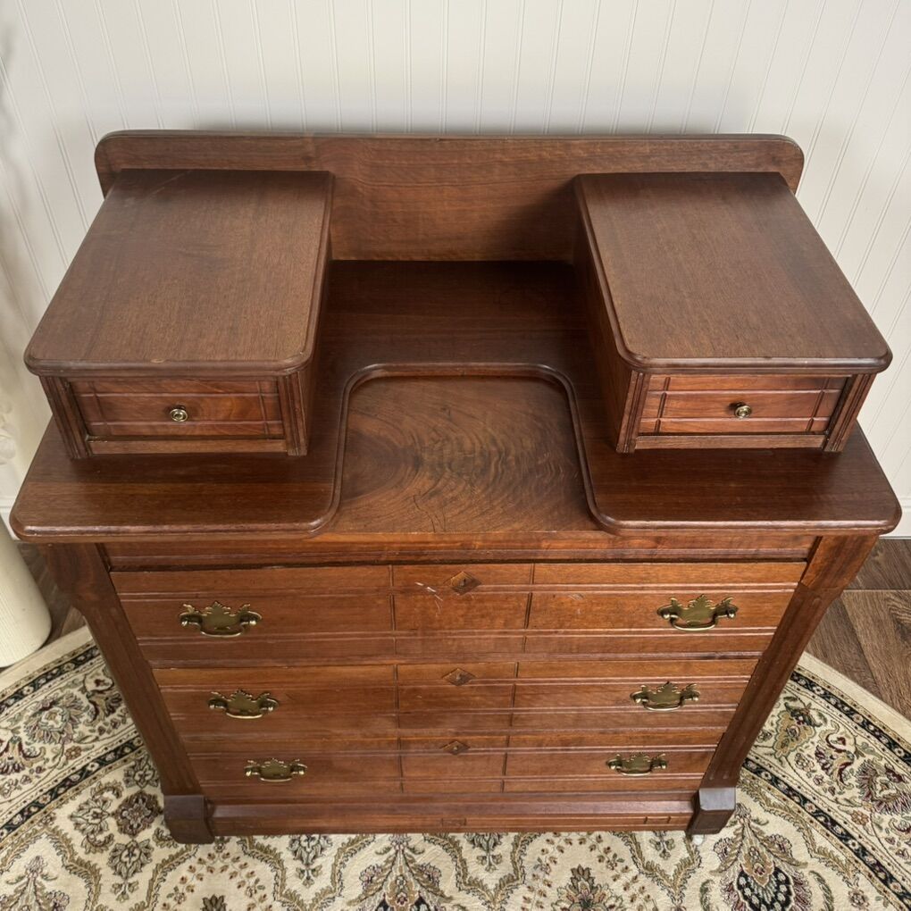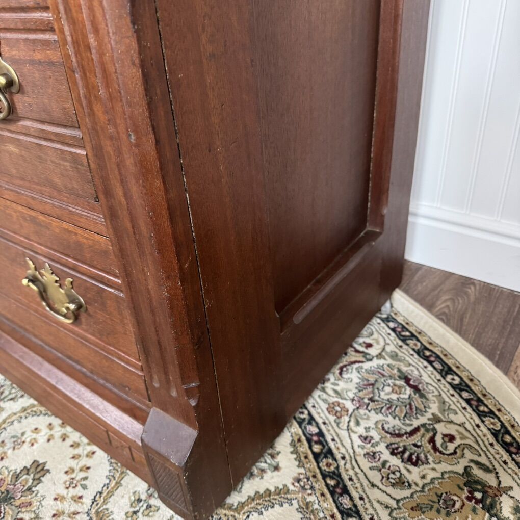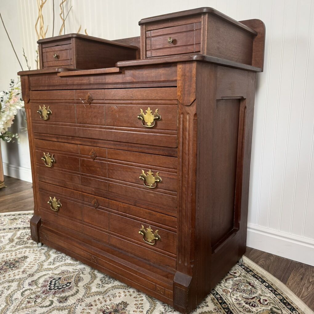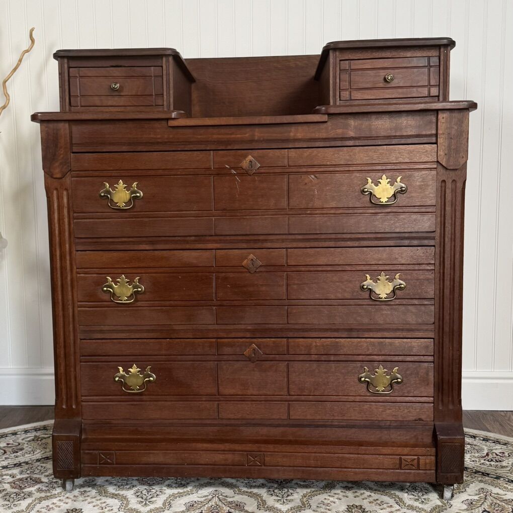 VenmoBeautiful late-1800s antique dresser with solid hardwood construction and original brass pulls. Classic carved details with a timeless, traditional look.