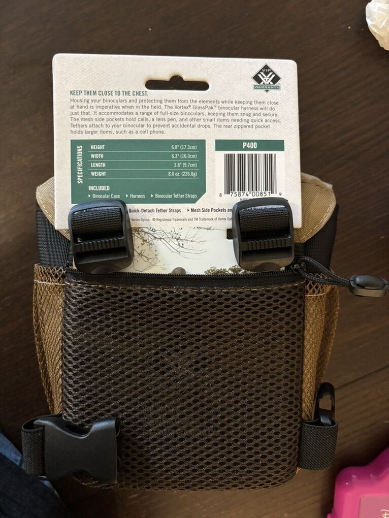 Vortex Glasspak binocular harness. Got for Christmas, but I already have one. $15 less than Vortex’s website.