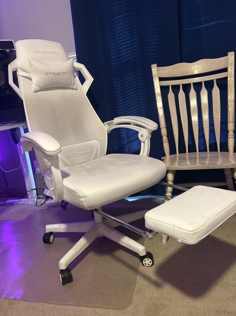 GTRACING Gaming Chair, Computer Chair with Mesh Back, Ergonomic Game Chair with Footrest, Reclining Game Chair with Adjustable Headrest and Lumbar Support for Gaming and Office (White) It’s been kept pretty well. Little to no discoloring and no visible wear anywhere. Brand New goes for about 200