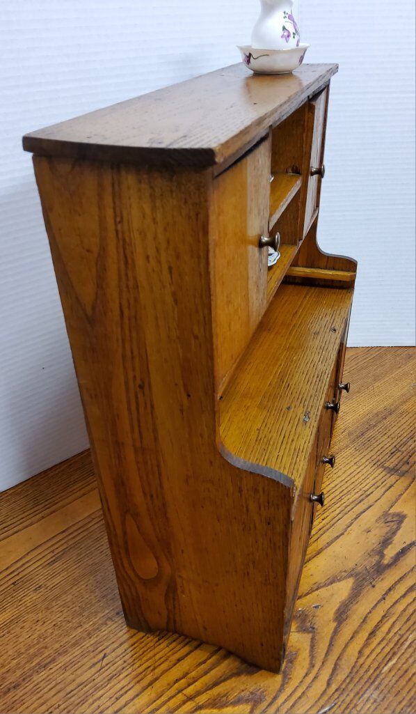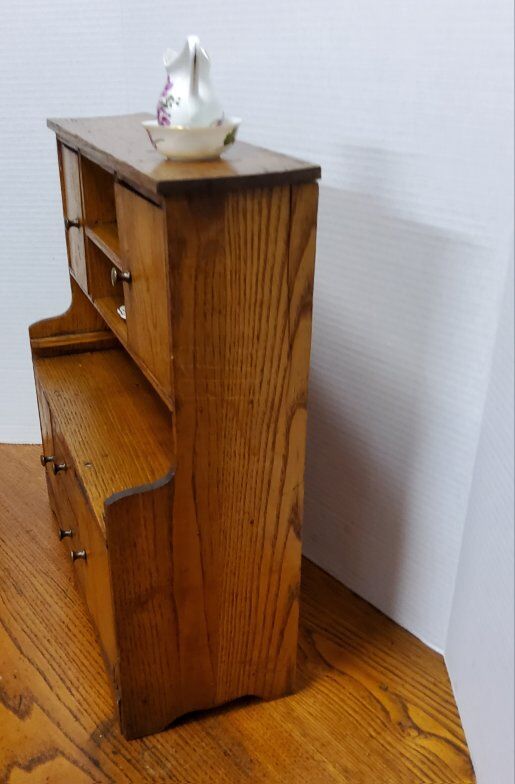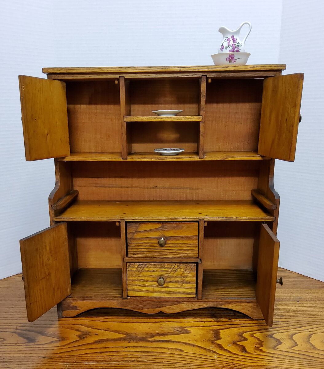 VenmoThis Antique TOY Oak Hoosier Cupboard is a handmade piece measuring 14.5 x 16 inches. traditional design. perfect for displaying small items or play. charming decorative piece. See pictures as part of description. Cash or Venmo only Willing to ship if you make arrangements with UPS OR FEDEX