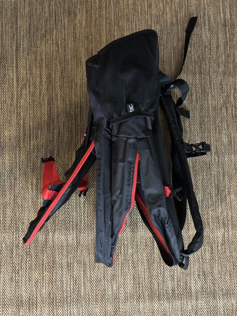 VenmoBackcountry model BC4703 backpack. Large capacity for whatever you need to pack. 2 water bottle compartments.Stitched Sturgeon Electric logo above the rear bungee cord.