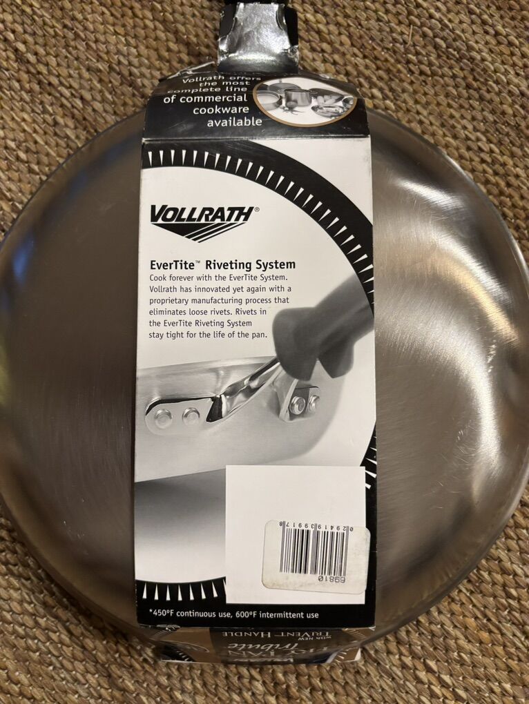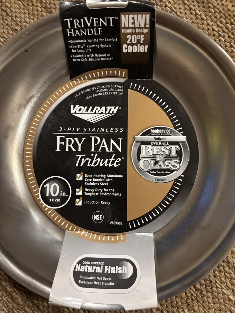 VenmoCommercial quality frying pan. Thick aluminum construction for even heat and a 3-ply stainless steel coating.