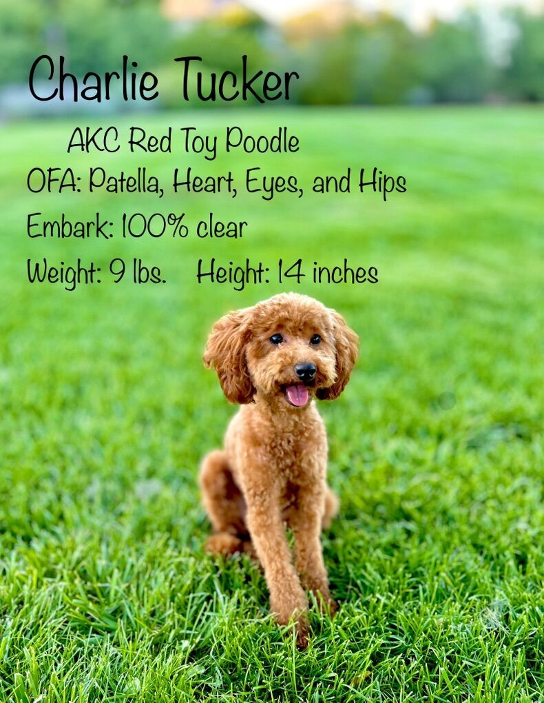 ZelleTucker is a red AKC registered toy/mini poodle with the sweetest little personality. He is a cuddle bug and loves everyone. He is my daughter emotional support animal and she totes him everywhere! Here are some details about Tucker!